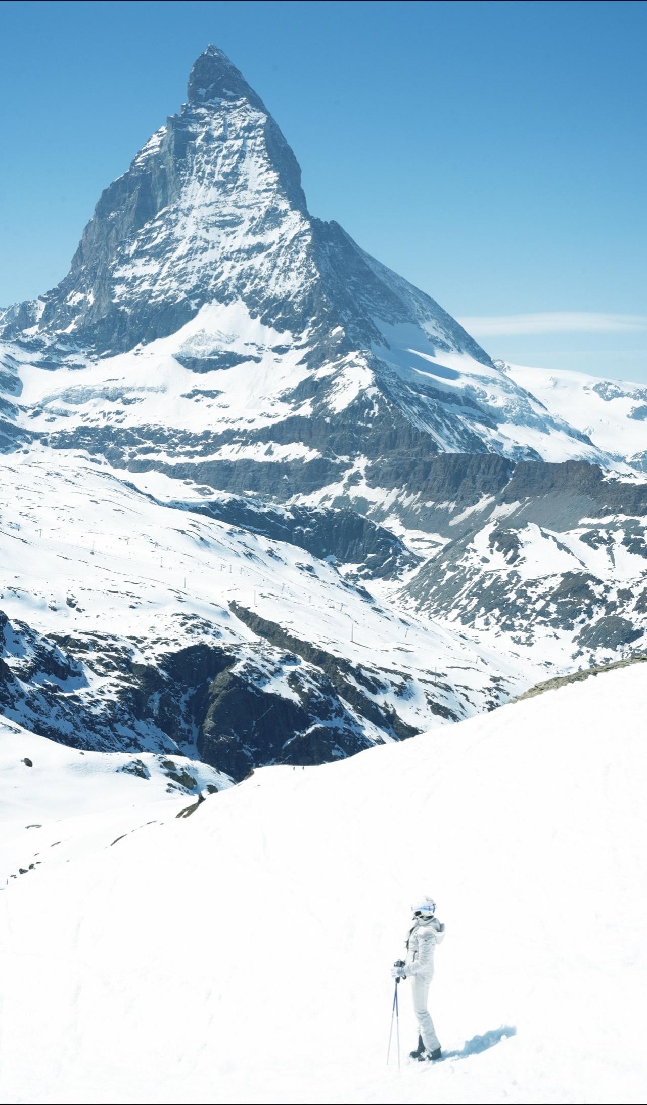 从意大利Cervinia跨国滑进瑞士采尔马特,抬头就是那座孤傲的三角山峰🏔️。在海拔3800多米的冰川上飞驰,近距离看它的时候,真的有被大自然狠狠治愈。而且这里全年可滑,随时都能来朝圣。