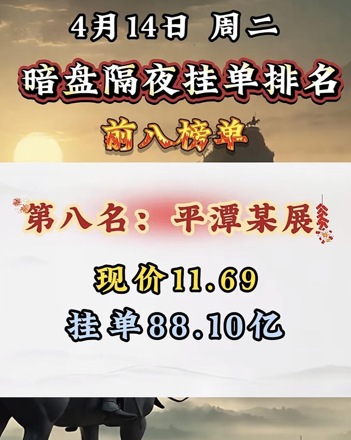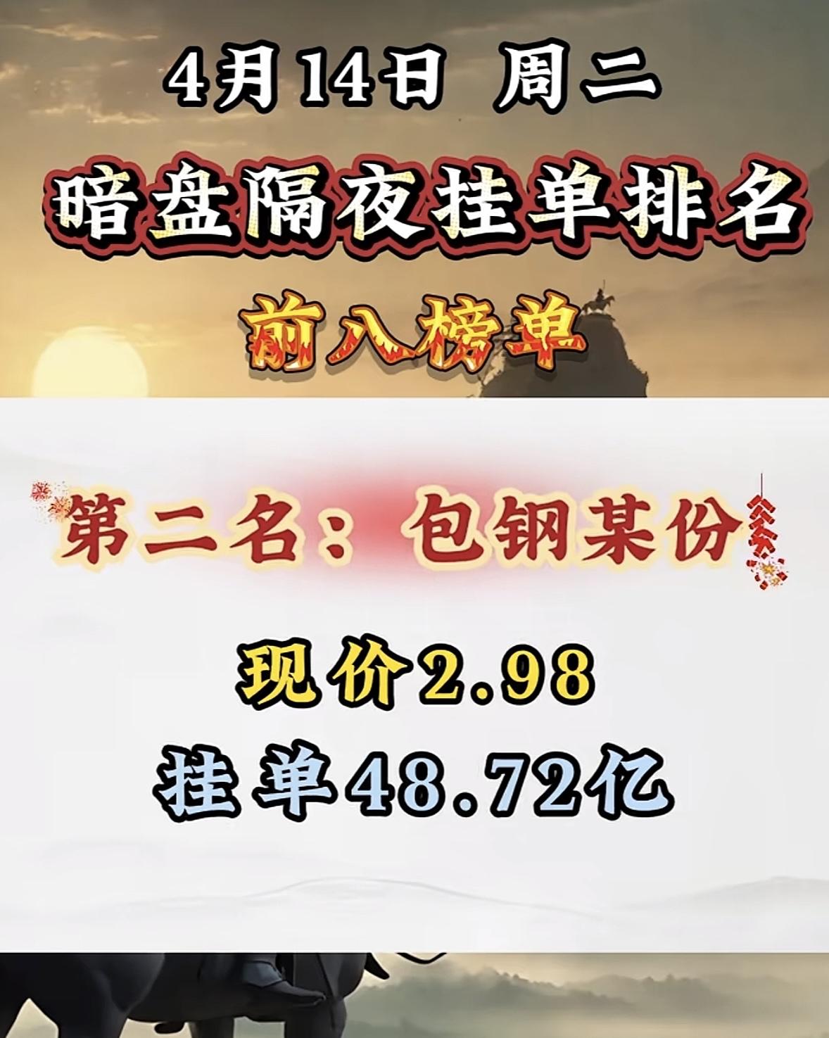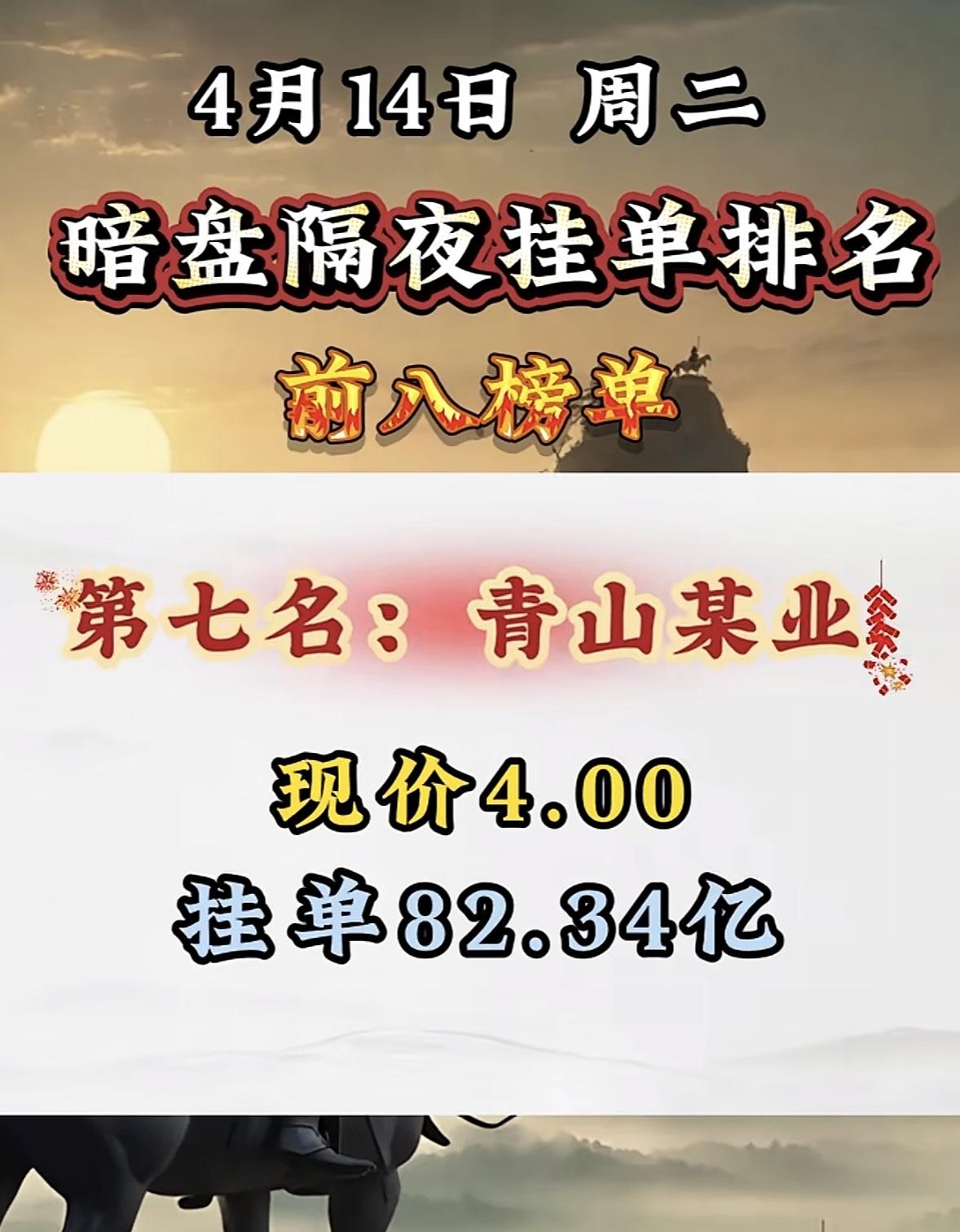 4月14日周二暗盘隔夜挂单排行榜出炉 4月14日暗盘隔夜挂单排行有点意思,青山