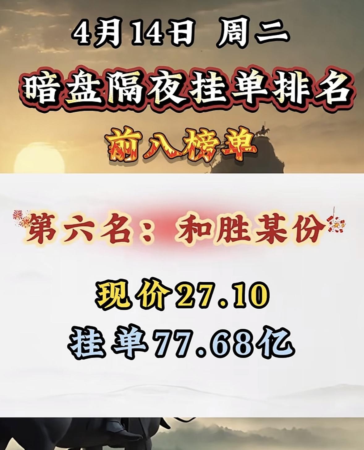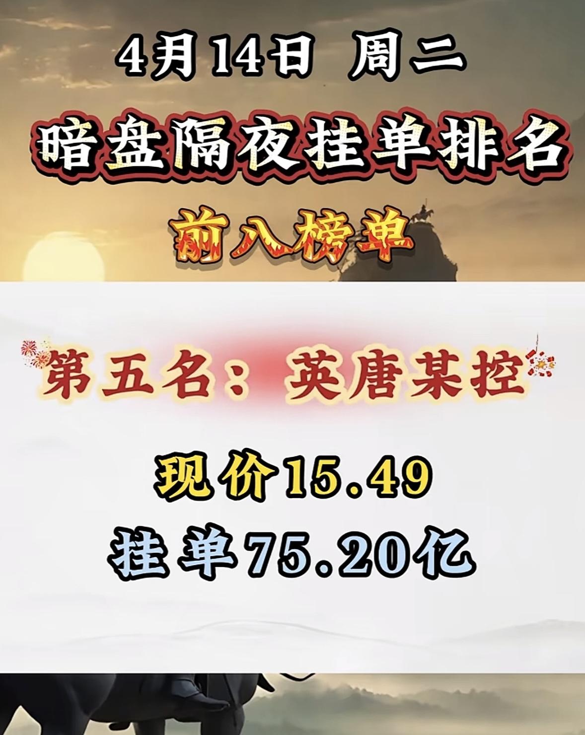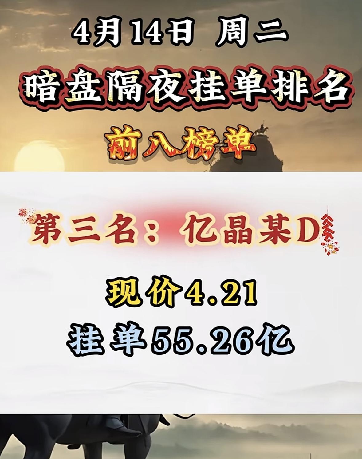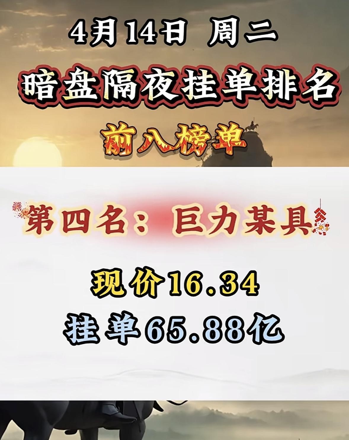 4月14日周二暗盘隔夜挂单排行榜出炉 4月14日暗盘隔夜挂单排行有点意思,青山