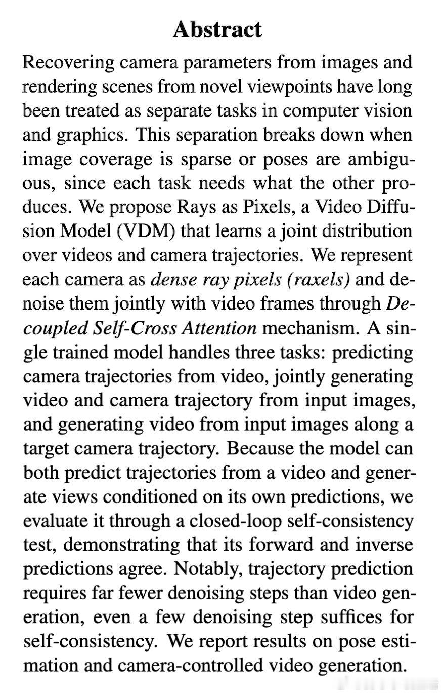 [CV]《Rays as Pixels: Learning A Joint Distribution of Videos and Camera Trajectories》W Jang, S Liu, S Sanyal, J C Perez… [Meta AI] (2026)