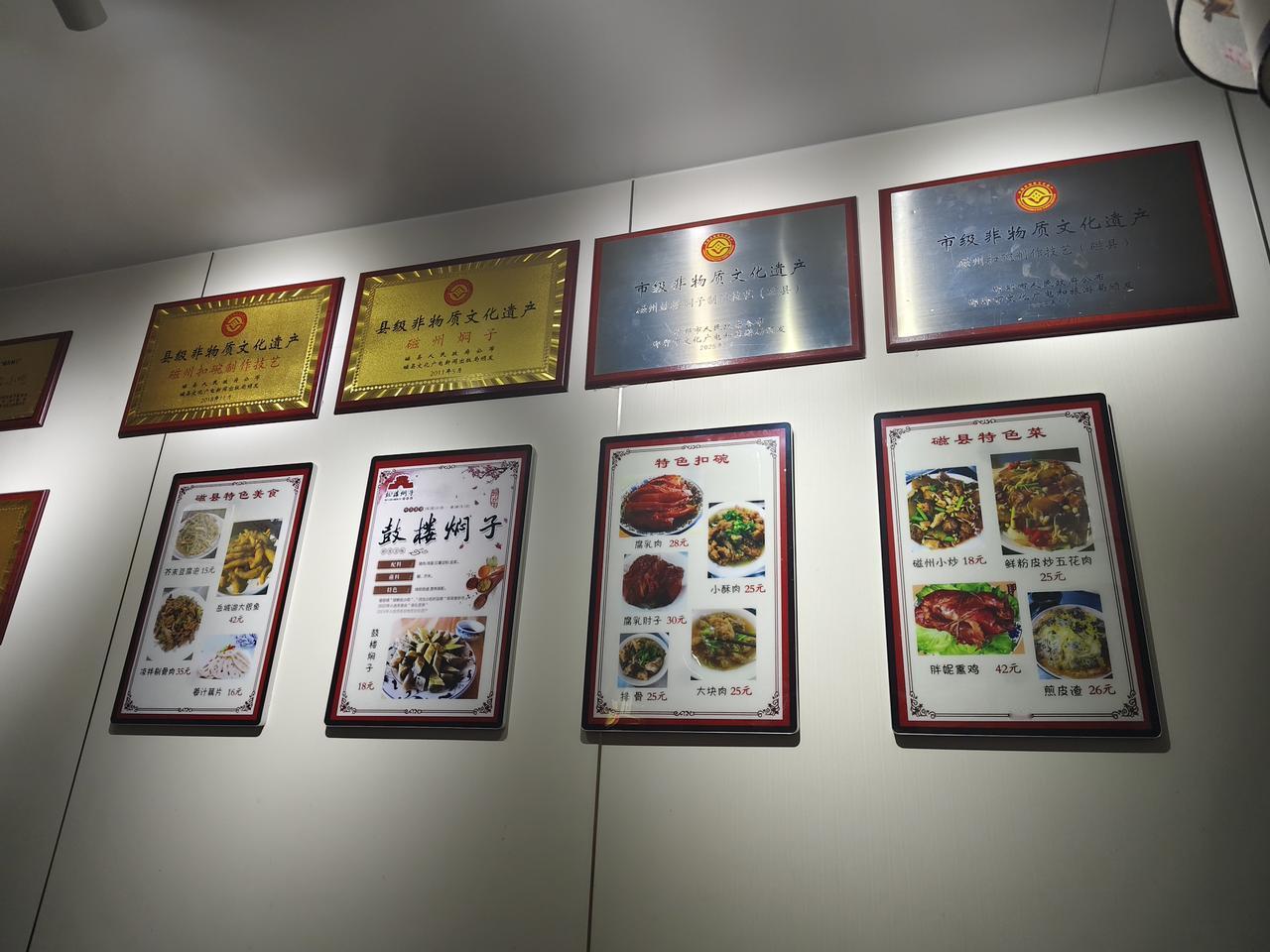 我先闷了一口酒,夹起一块焖子塞进嘴里。咀嚼咽下,真得品出了焖子的咸香。我们互相提醒着慢慢吃,细细品,可结果是吃了个接二连三。最后那三两块,我们才去看它的食材组成和结构。这时,我才抬头看见墙上挂着的非遗食品的铜质标牌,才去读关于鼓楼焖子的文字介绍。吃过鼓楼焖子之后,看着店内的食客们和前来打包的人群,我们的共同感觉是鼓楼焖子值得品尝,金字招牌它值得拥有。