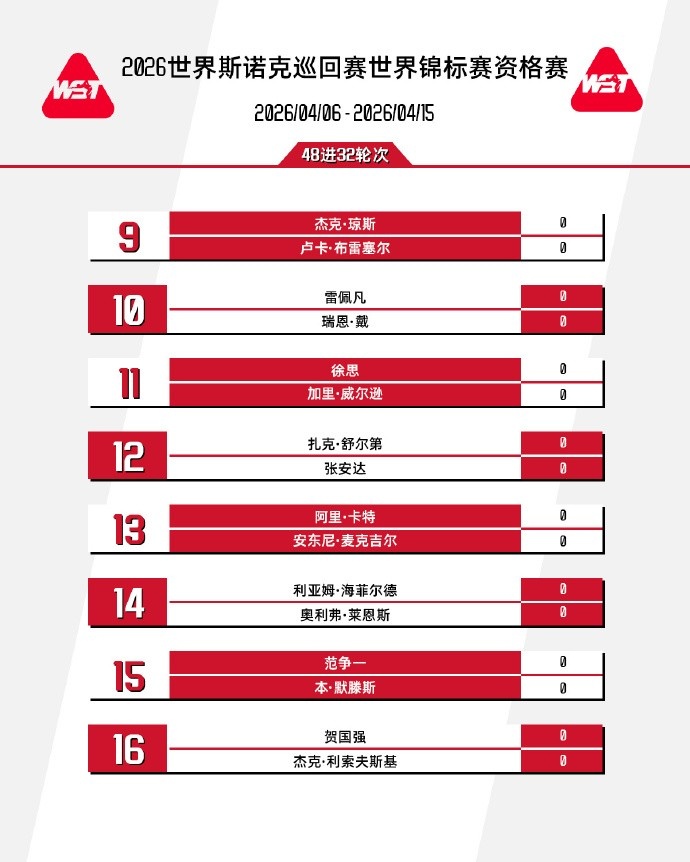 斯诺克世锦赛资格赛审判轮将于今天18点、凌晨2点,明天18点、凌晨2点进行。