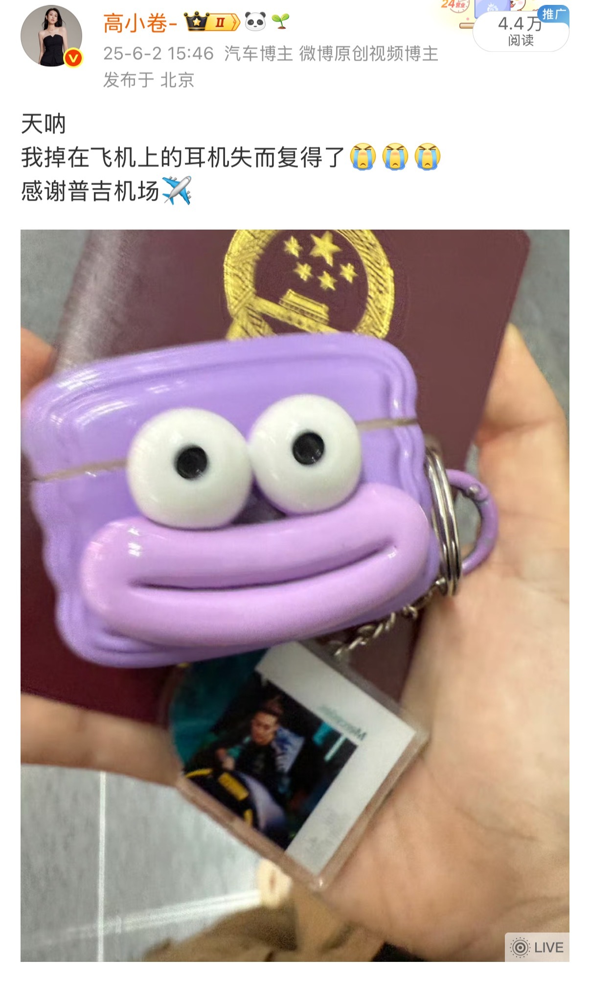 哦再说个离谱的,前几天我vivo手机也丢了,但好消息是也找回来了我这该说不说,记性不咋样,运气倒挺好…卷妹的唠嗑 北京·首都机场T3航站楼