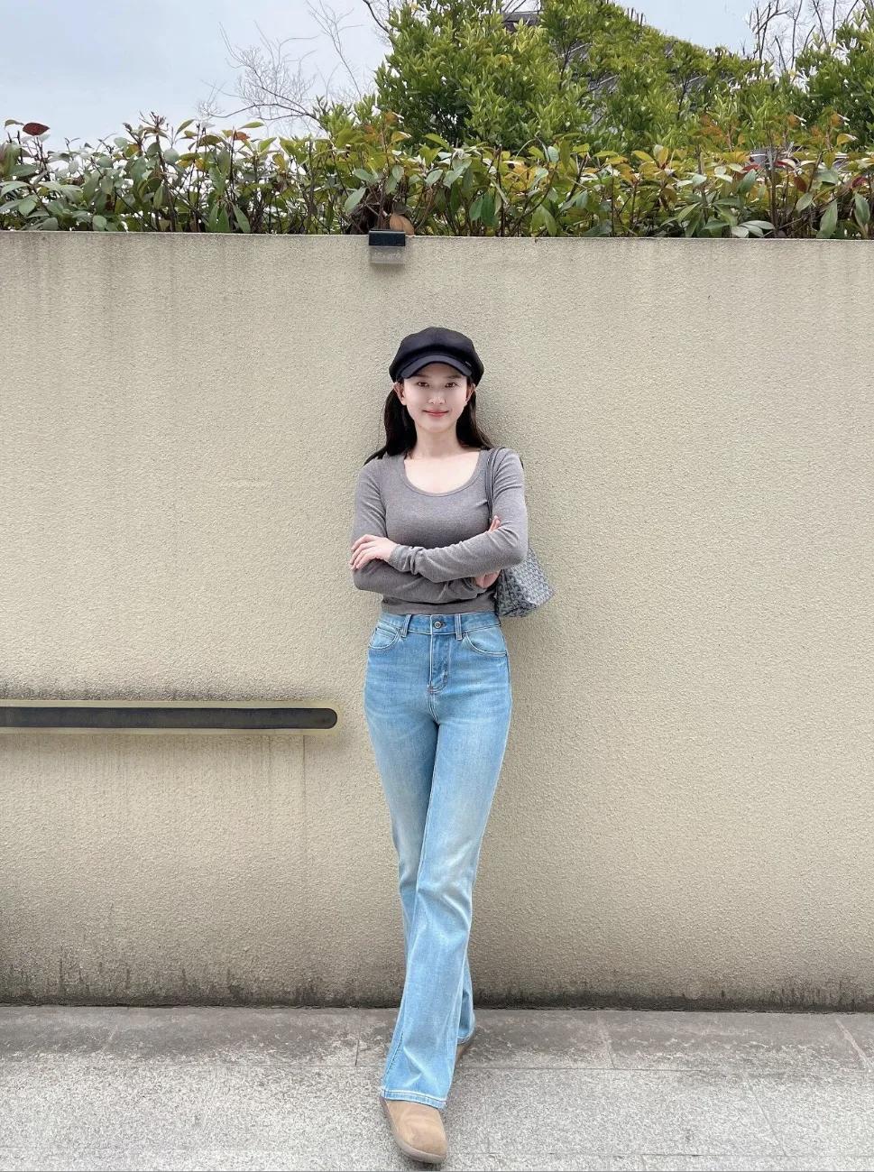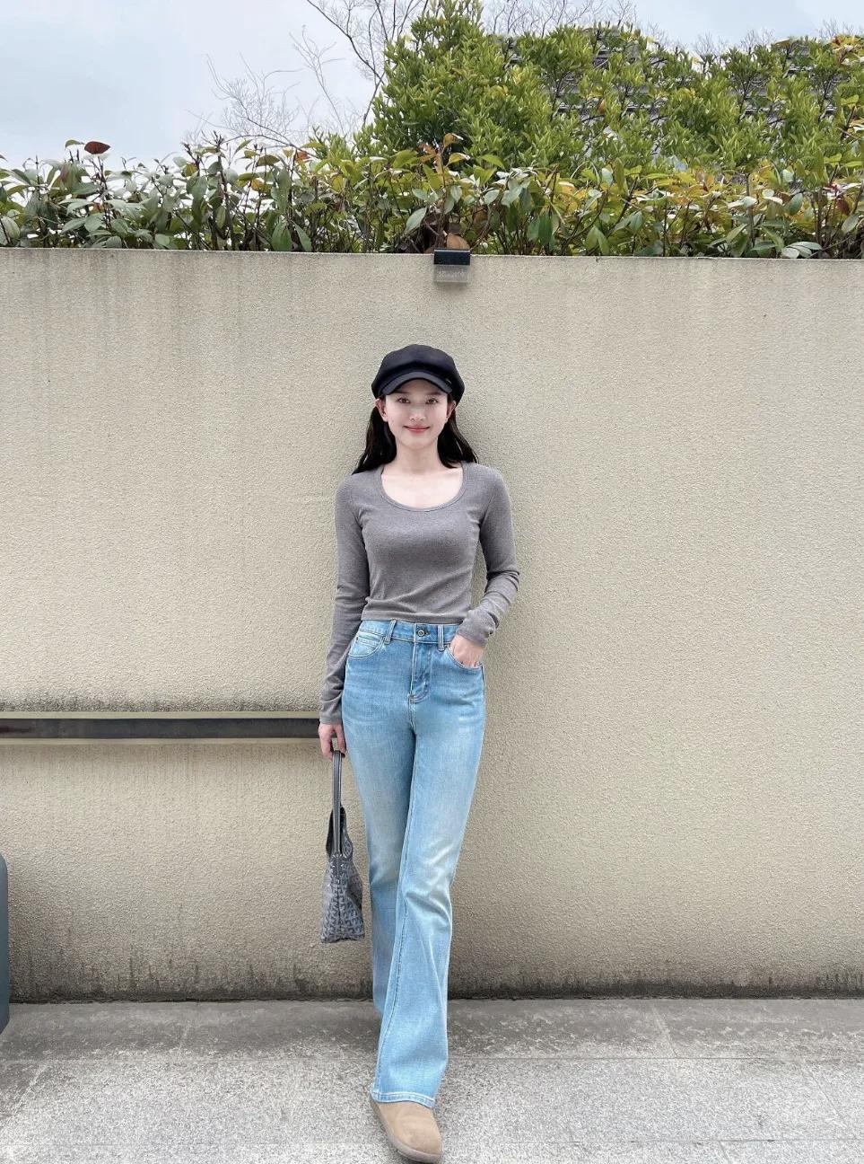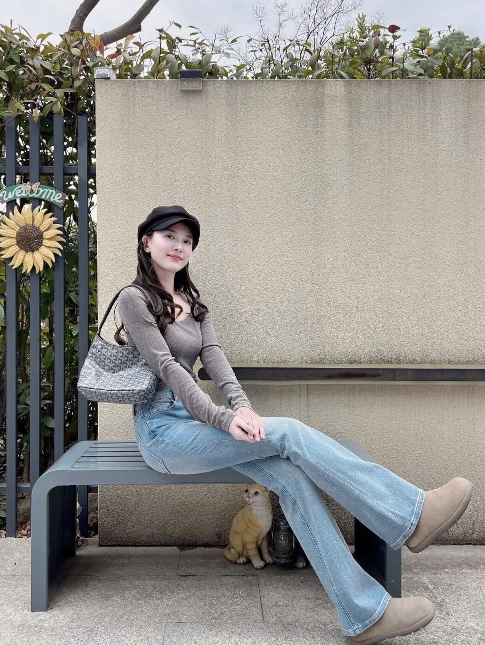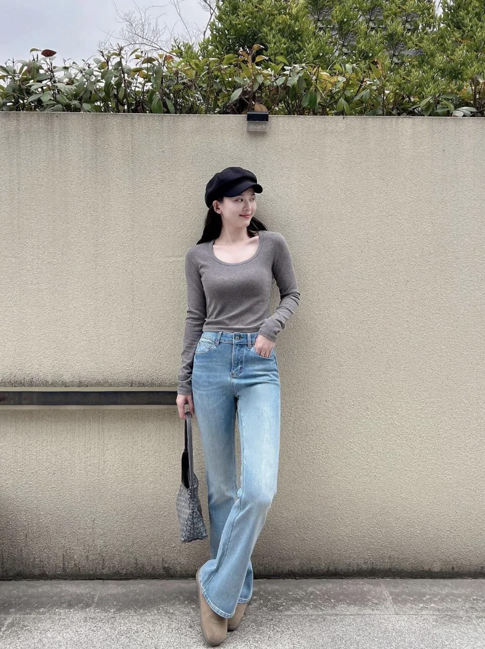 时髦洋气的穿搭风格,普普通通牛仔裤,一定黑色帽子,日常时髦感穿搭 绝美穿搭示范 减龄牛仔裤穿搭