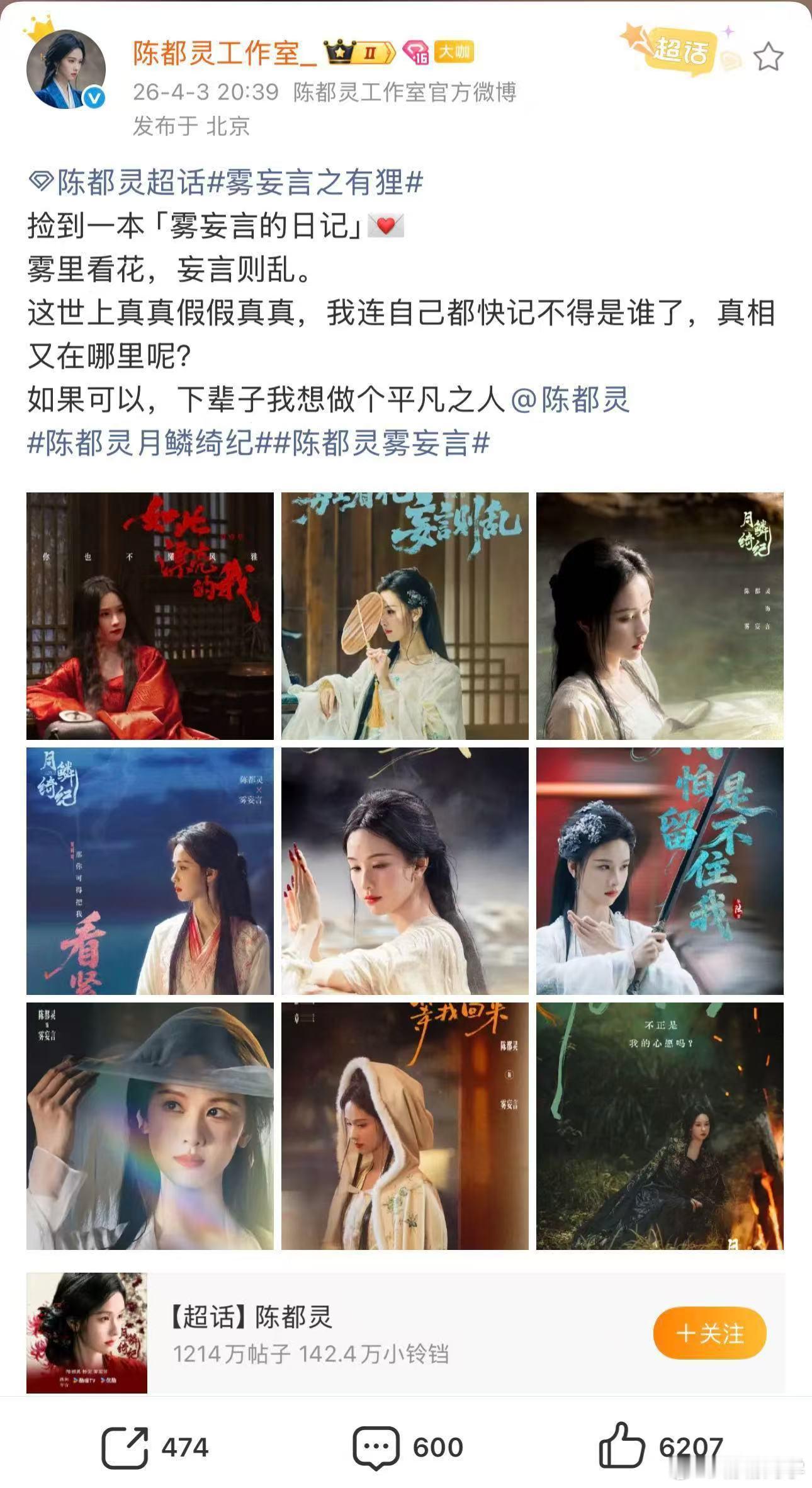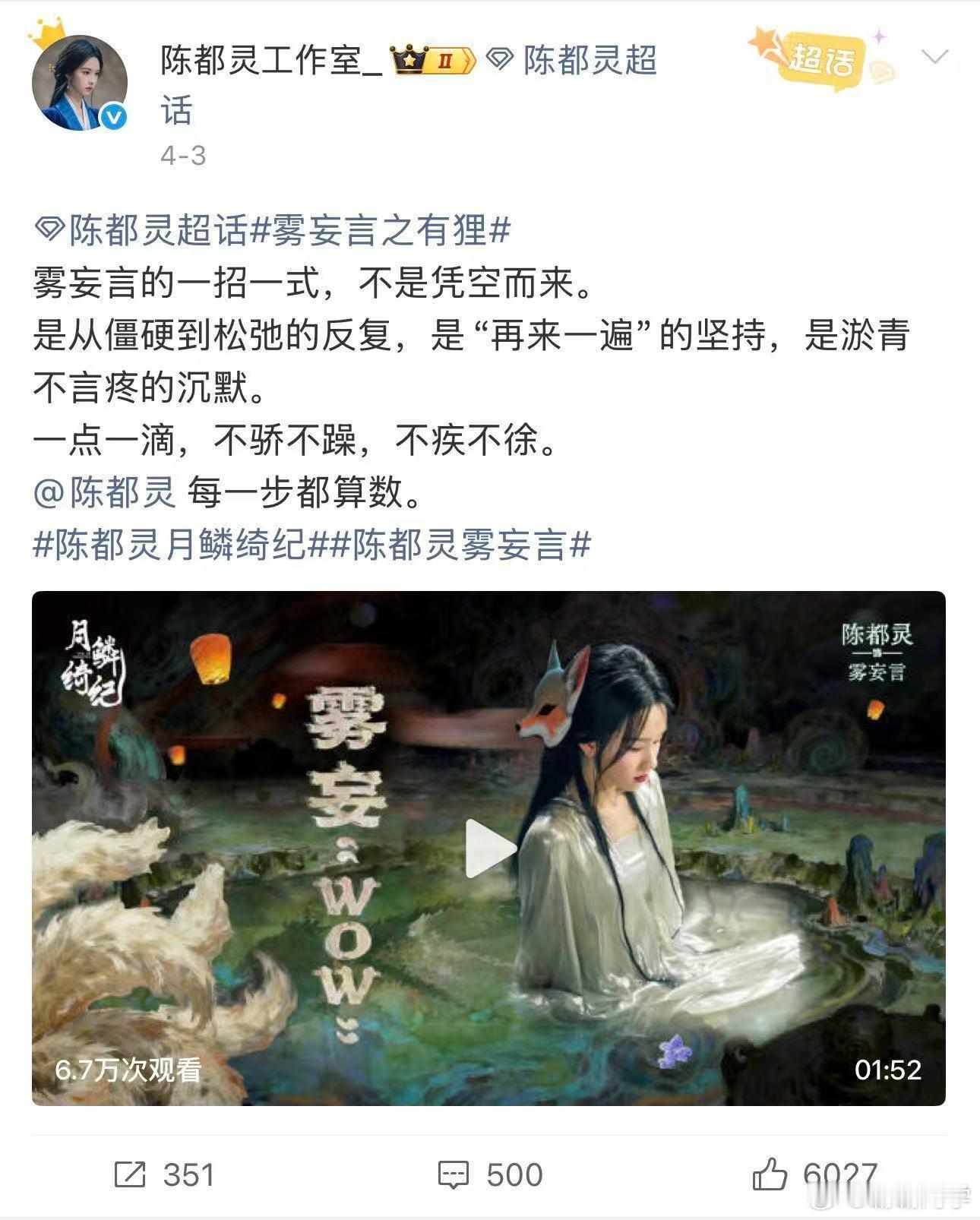 陈都灵工作室文案是要考研吗 这文案水平真的可以直接考研了,不生硬不敷衍,每一句都能看出对陈都灵的用心