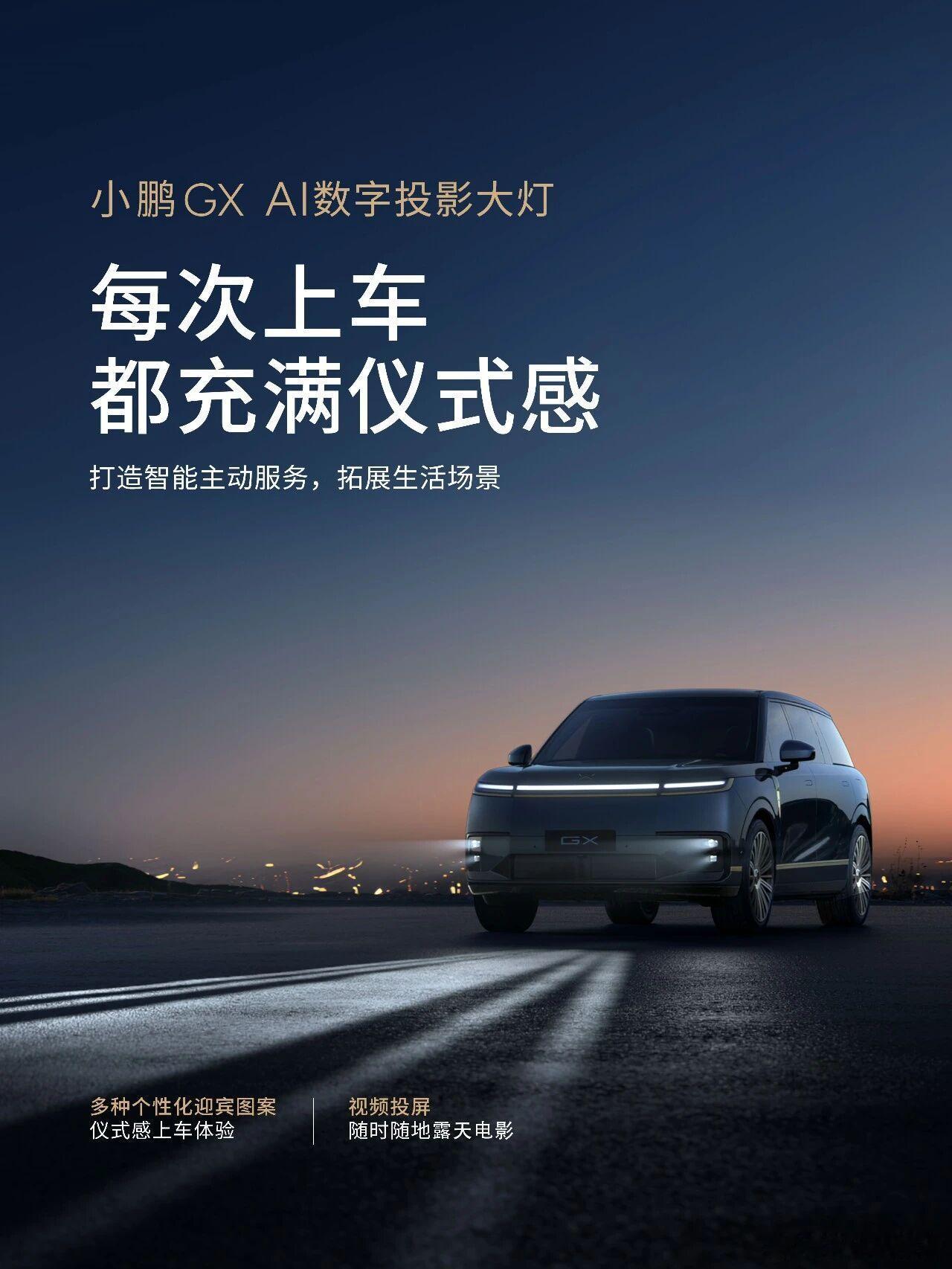 小鹏GX技术发布会定档4月15日小鹏GX推出峡湾灰、日照金山两款车色,4月15日举办技术发布会。该车联手华为推出AI数字投影大灯,以AI赋能光影,兼具安全与仪式感,亮相下一代豪华旗舰SUV。小鹏gx联手华为发布ai数字投影大灯小鹏gx