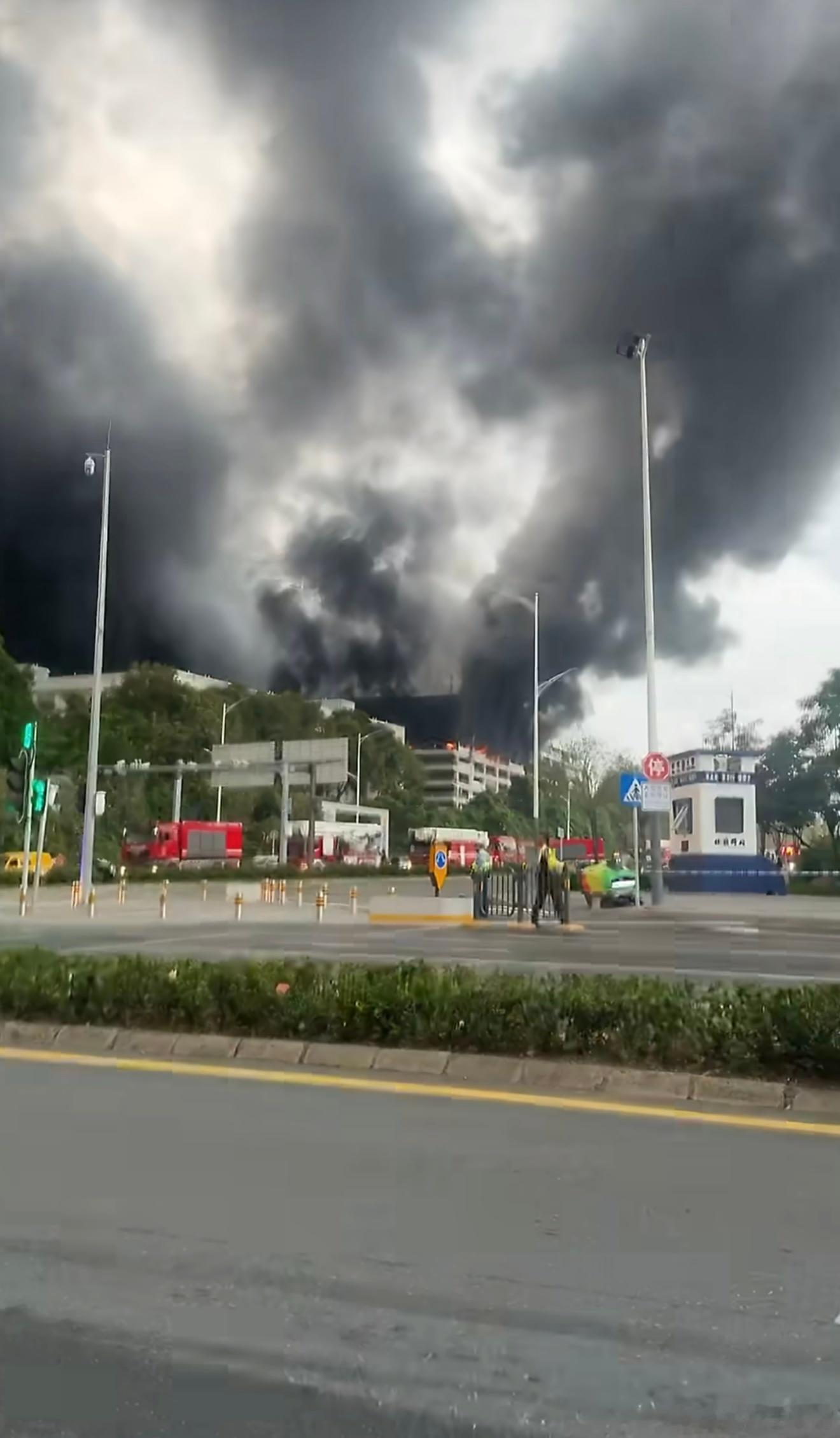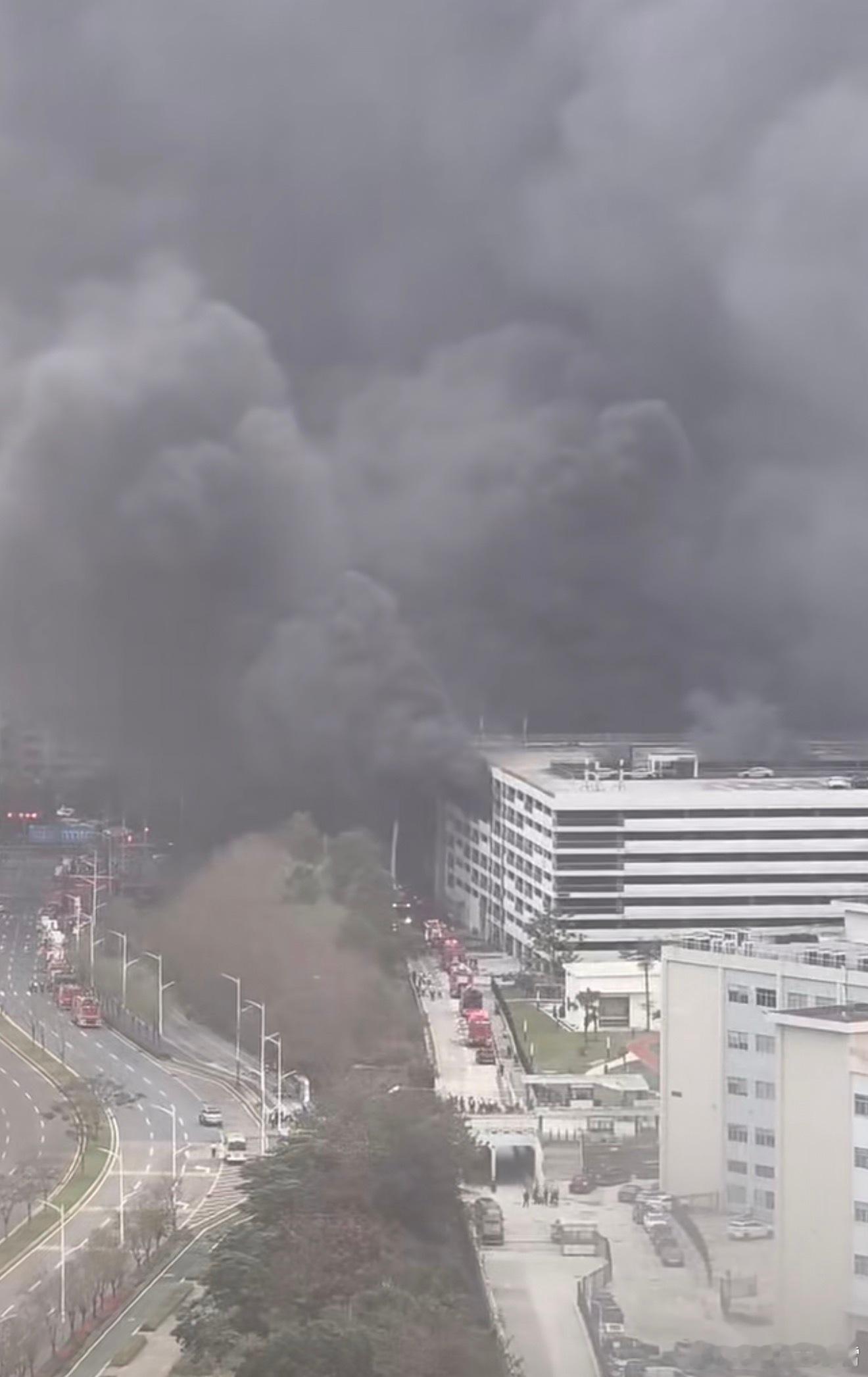 比亚迪公司起火我擦,火势看起来还不小,现场浓烟滚滚,据说着火的是一个立体车库,昨晚就已经在烧了,好在目前火势已被扑灭,希望没有人员伤亡