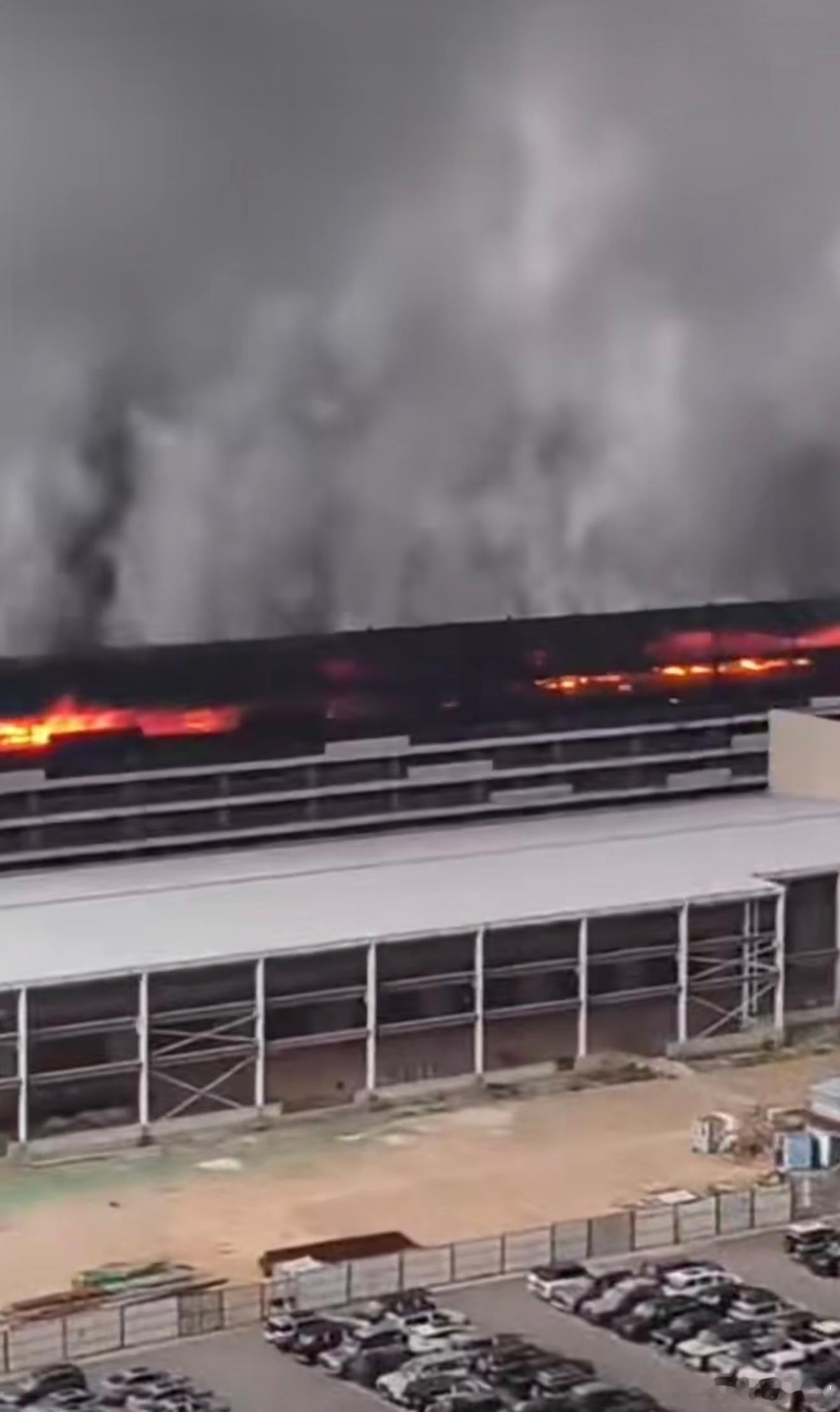 比亚迪公司起火我擦,火势看起来还不小,现场浓烟滚滚,据说着火的是一个立体车库,昨