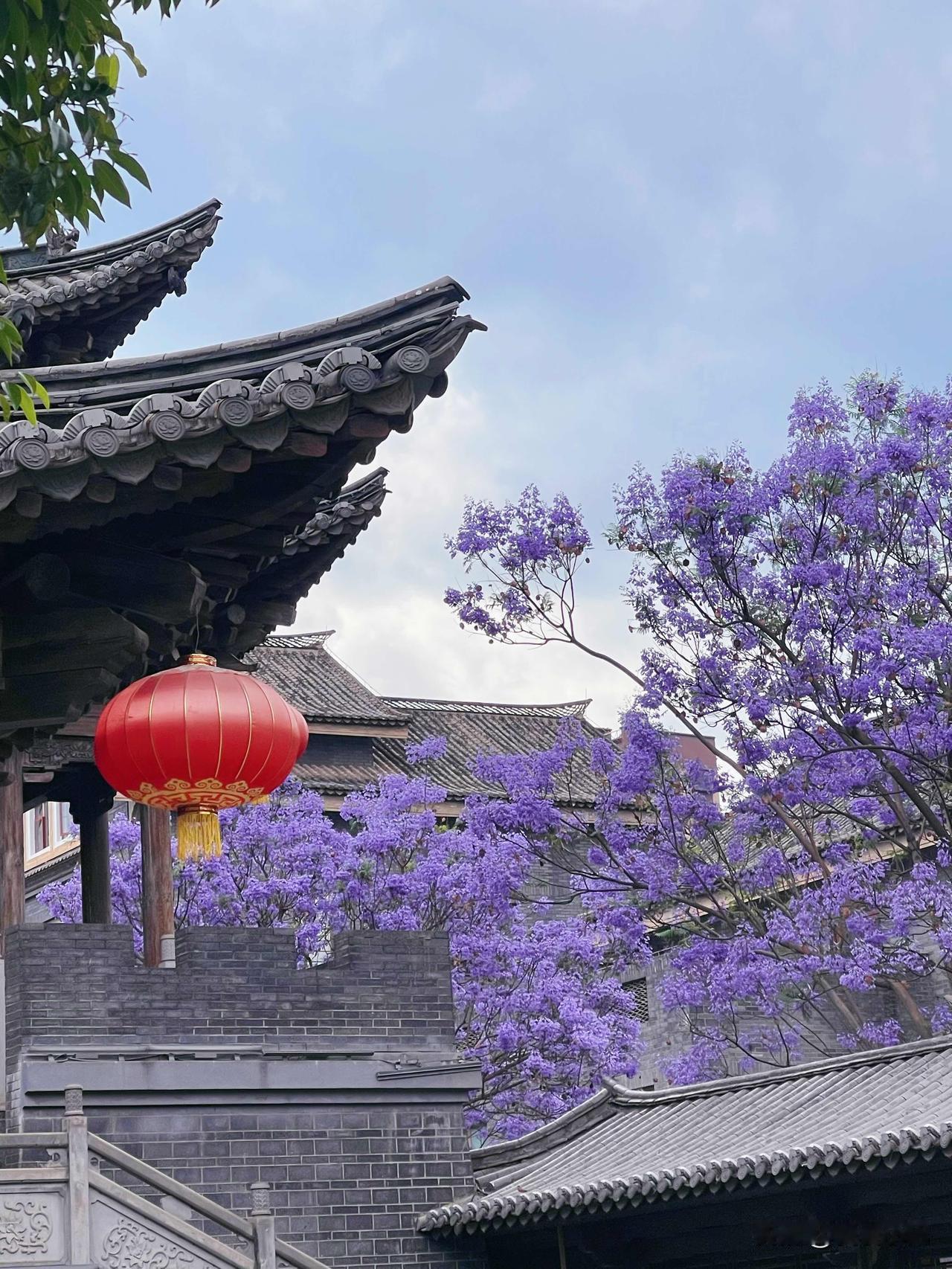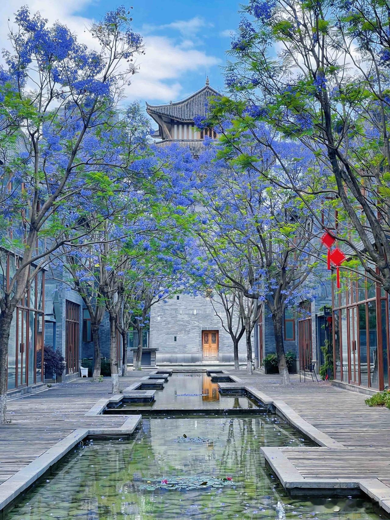 5️⃣ 小众秘境 · 富民上河院(中式古建×蓝花楹)