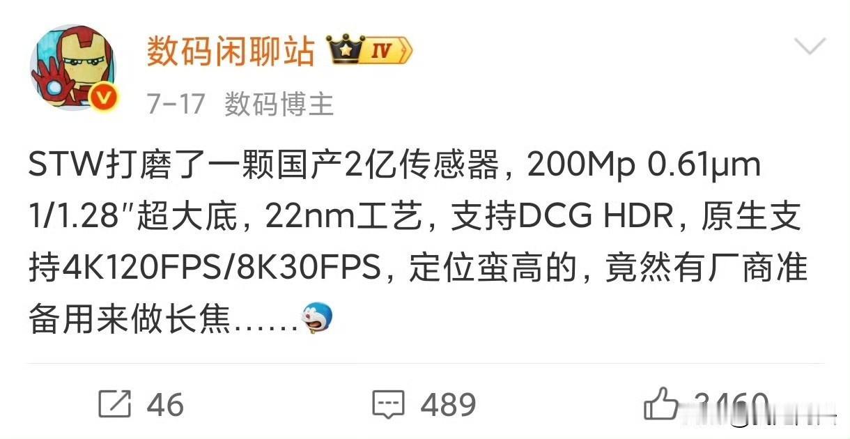 华为今天官宣的2亿像素潜望长焦镜头应该就是思特威的这款SCC80XS了。