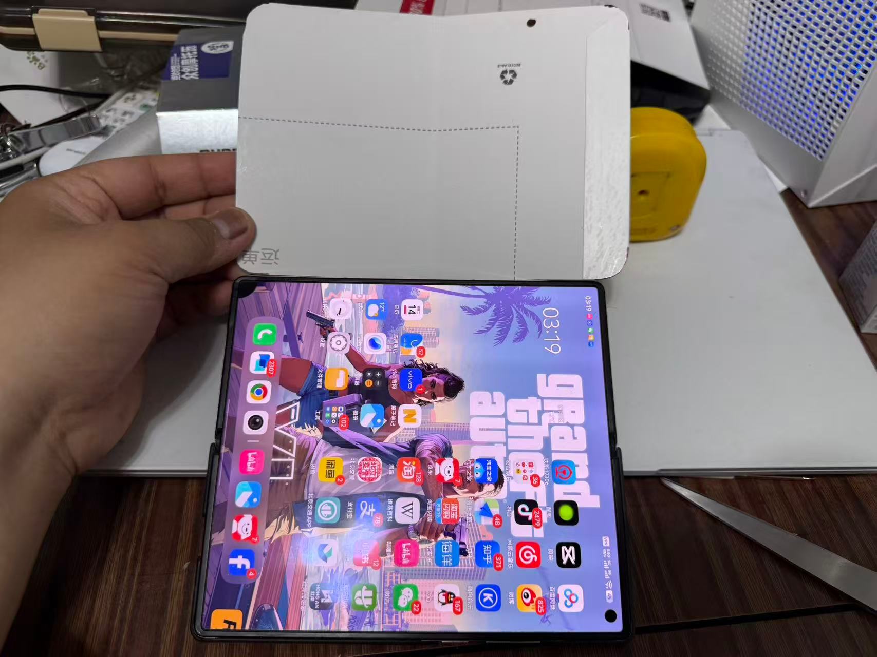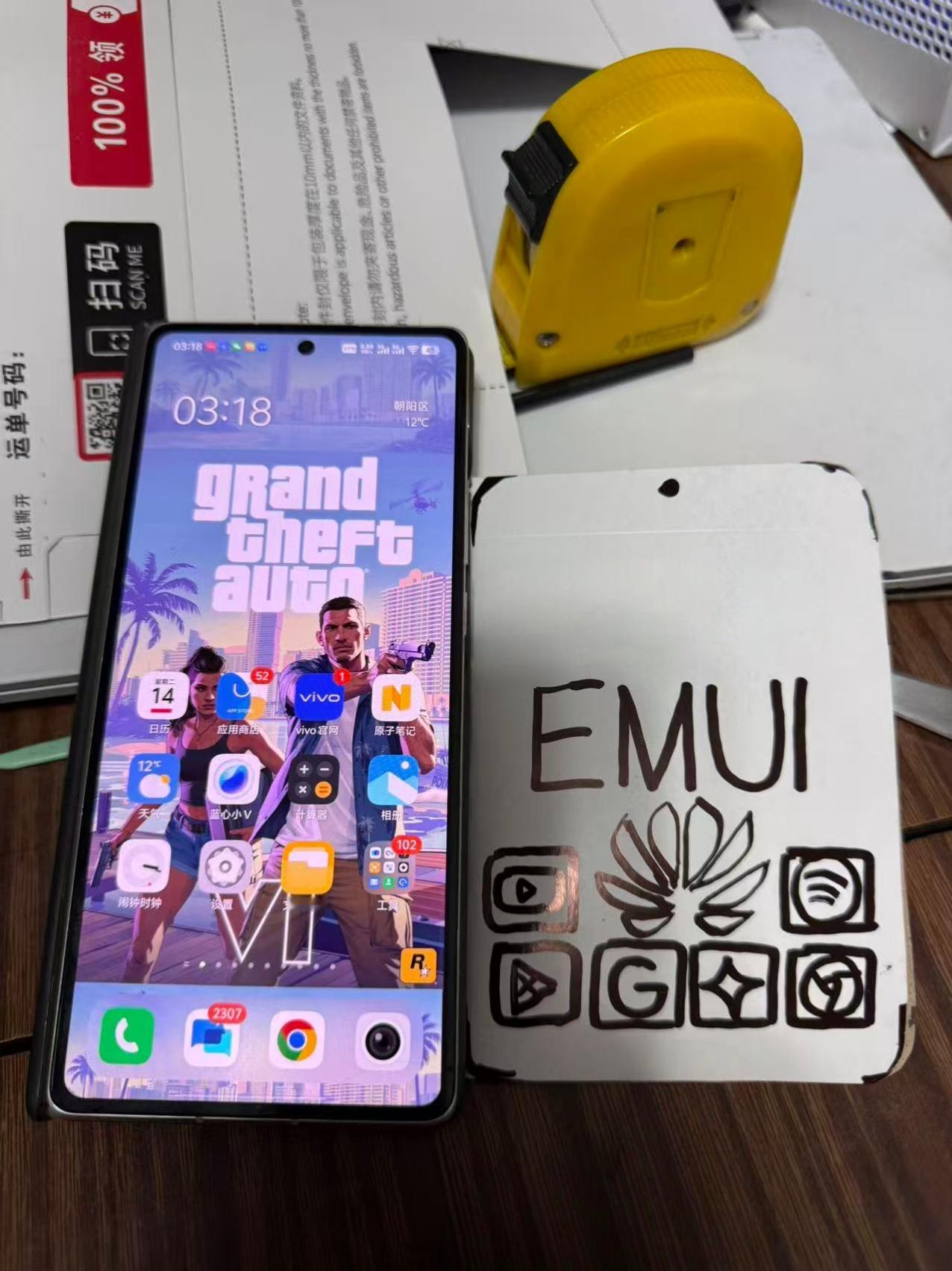 华为Pura X Max机身尺寸与Vivo XFold3Pro对比,纸是自己剪的