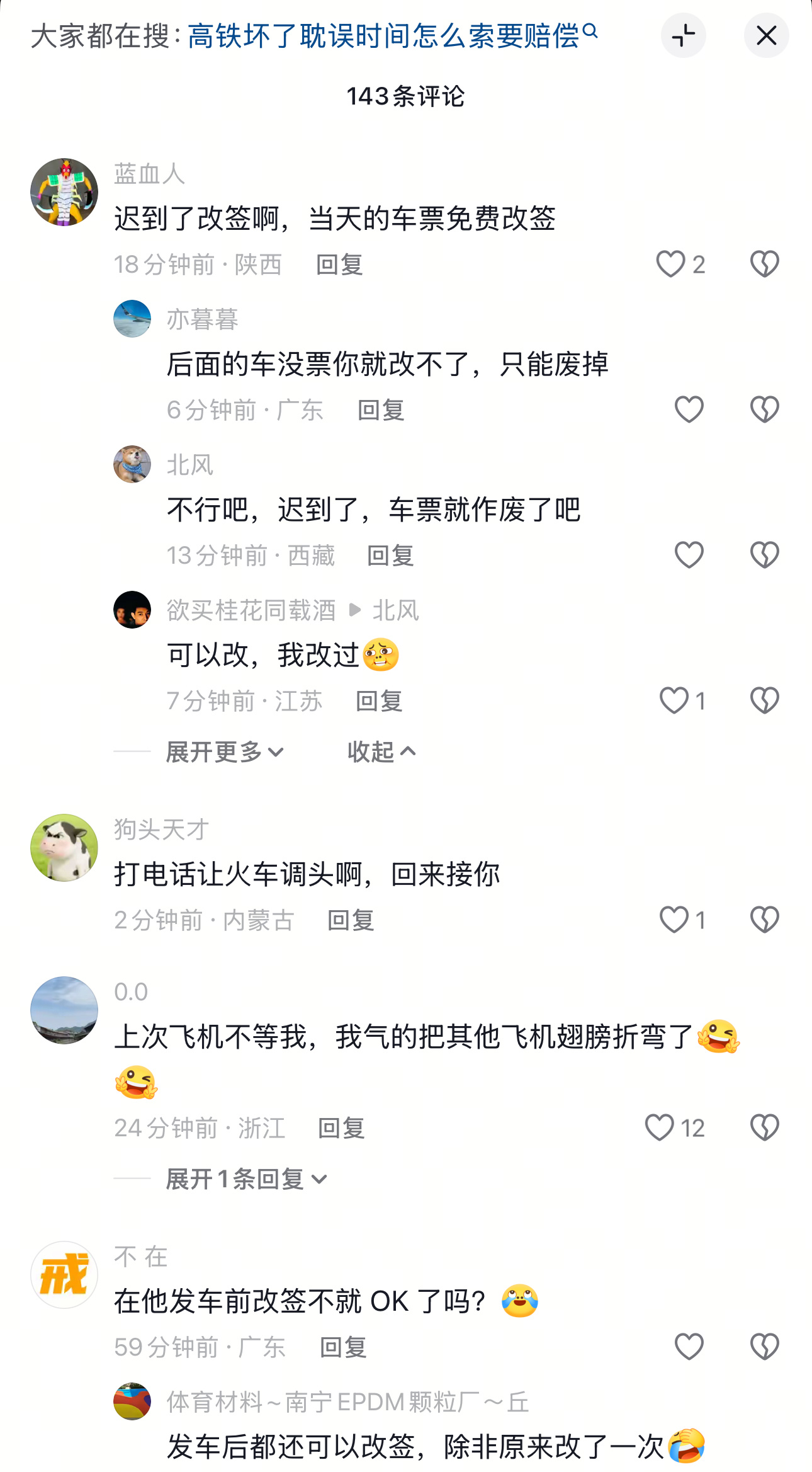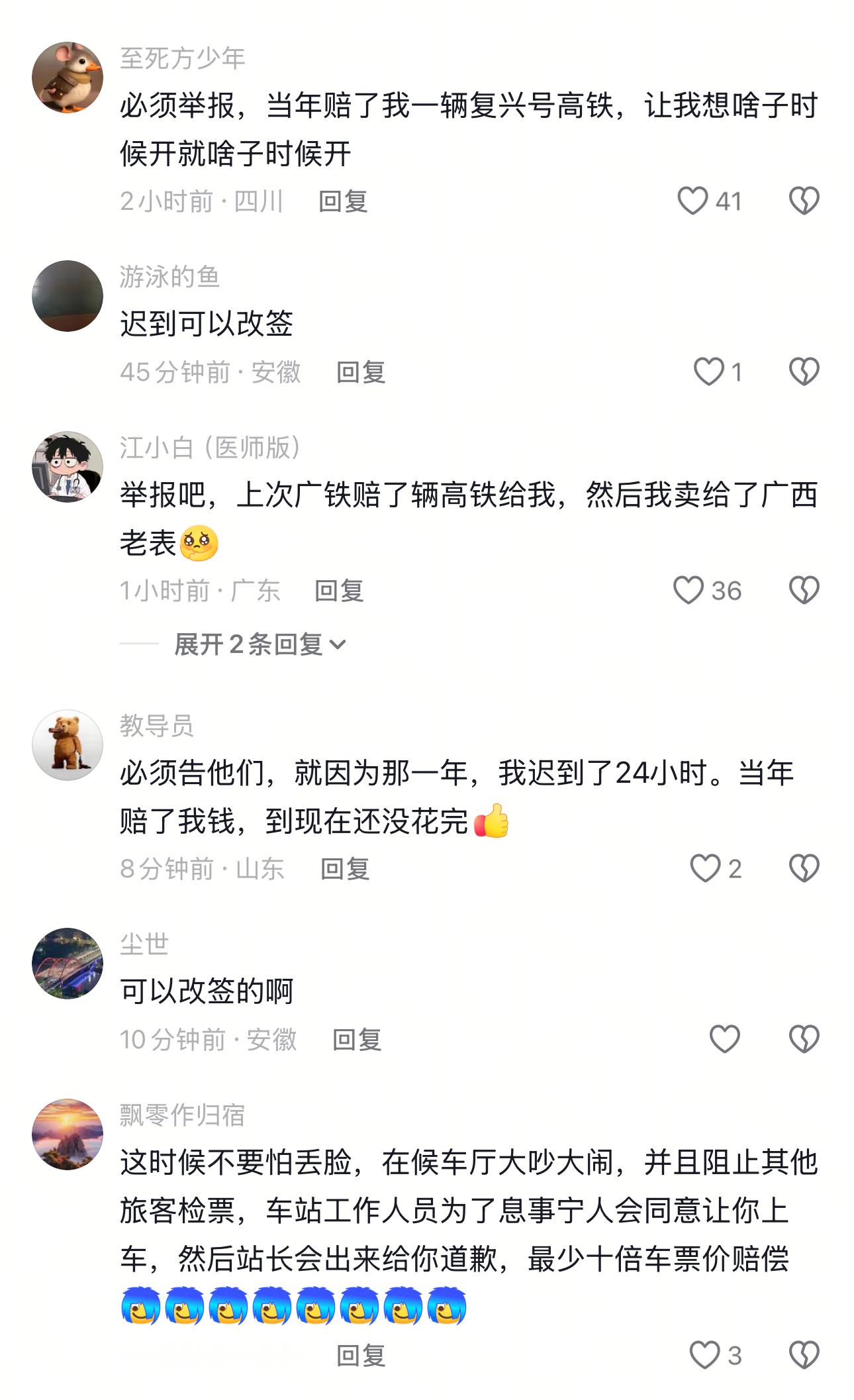 网友发帖投诉12306不作为,因为迟到车票被取消看评论,就放心了