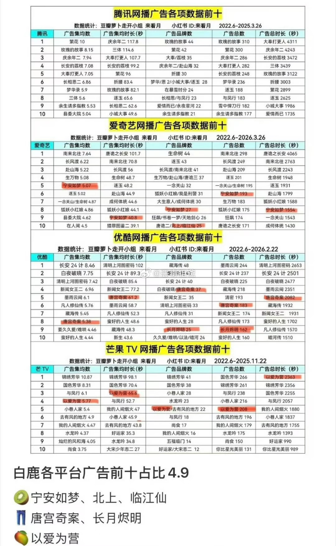 白鹿各平台招商广告前十占比就差🐧了 期待《莫离》🐧独生女叶璃