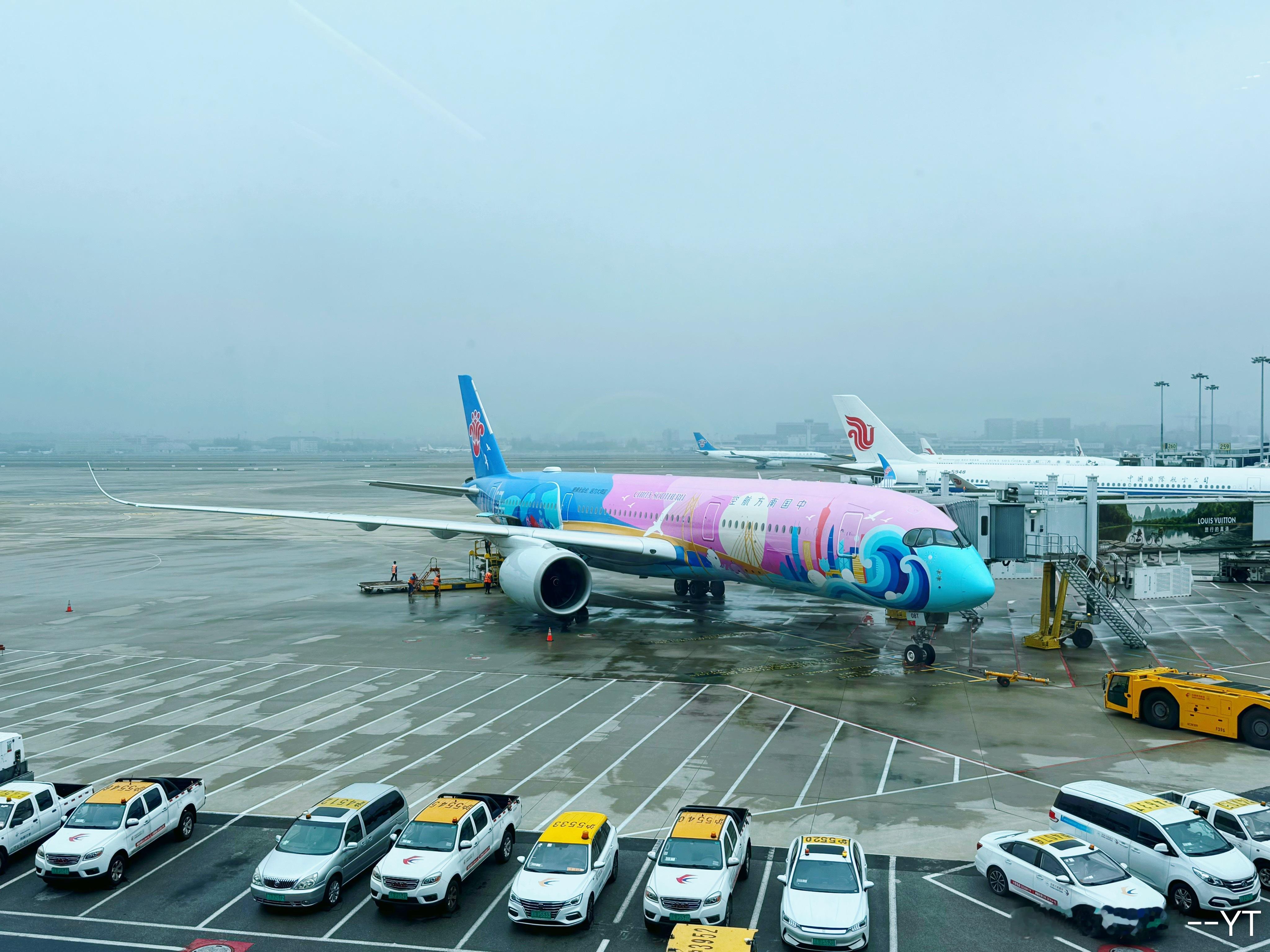 一车亦景 大城市就是好,可以看到这么多宽体机,南航这个彩绘359也好好看啊yt