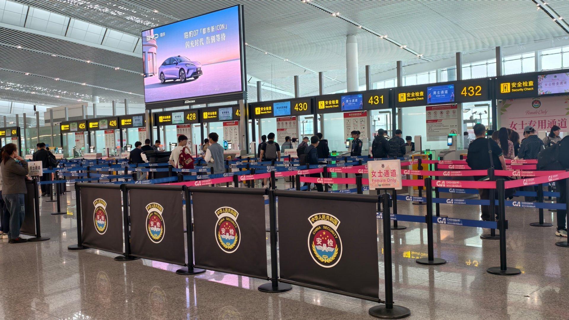 重庆江北机场有点意思全新腾势z9gt 跟海豹07 和问界m9 同屏!同时,安检口