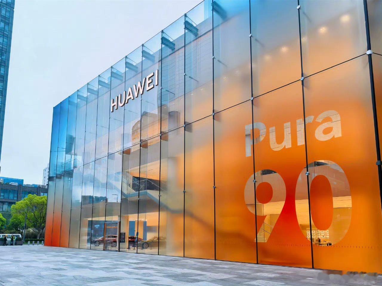 华为这个审美,真的很难不夸啊!谁路过这橘子海渐变玻璃幕墙,不会被一眼惊艳啊?!