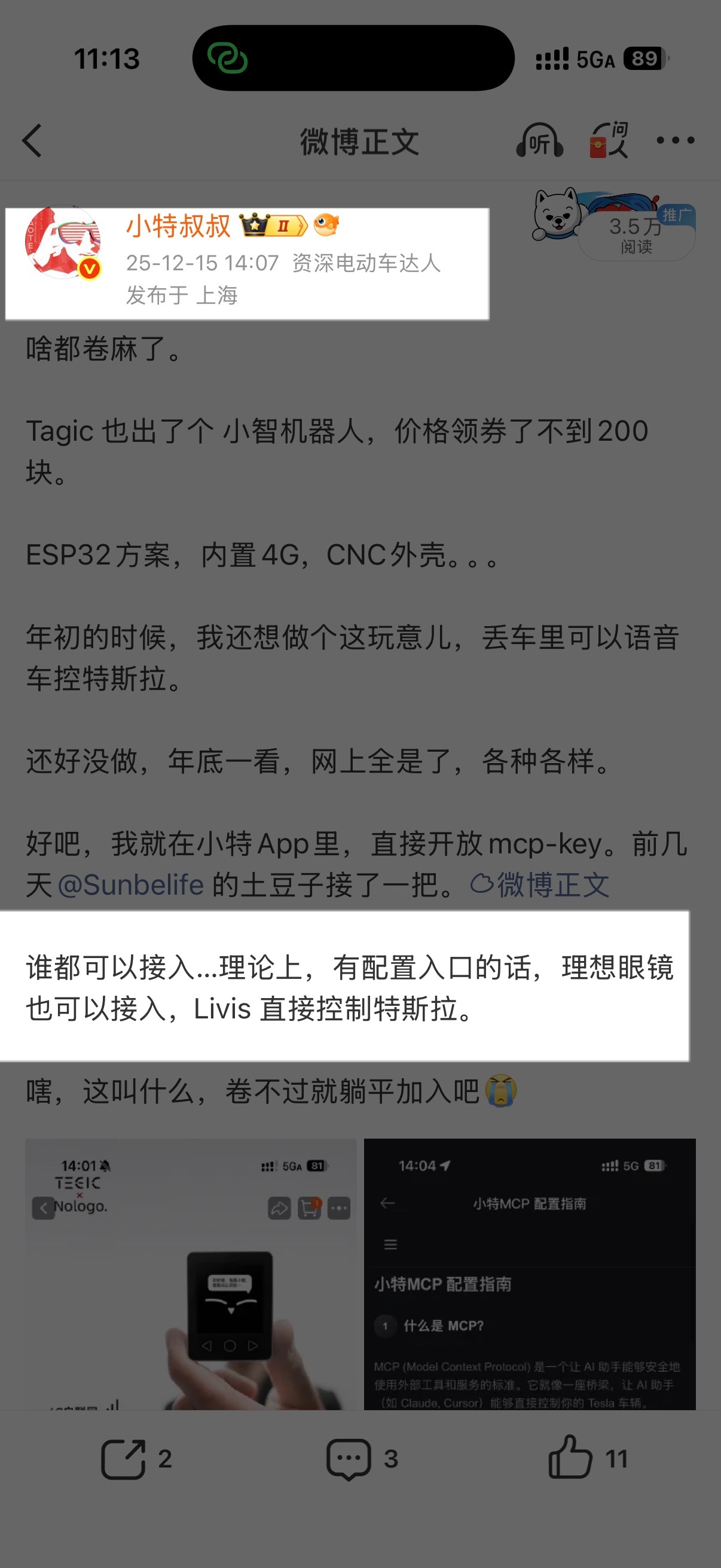 啊啊啊啊!几个月前,我随口一说 理想Livis眼镜 理论上也可以接入控制特斯拉。