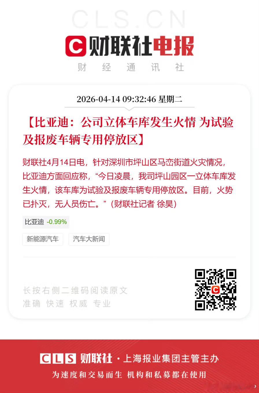 官方通报深圳比亚迪火灾 早上在电梯里听到有人讨论迪子的厂起火了。官方通报来了,是试验及报废车辆专用停放区起火。不管怎样,船夫哥这次大概率会撸人,毕竟对迪子造成恶劣的负面影响。