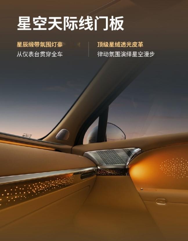 -星空天际线门板:贯穿星辰灯带搭配星绒透光皮革,提高氛围感