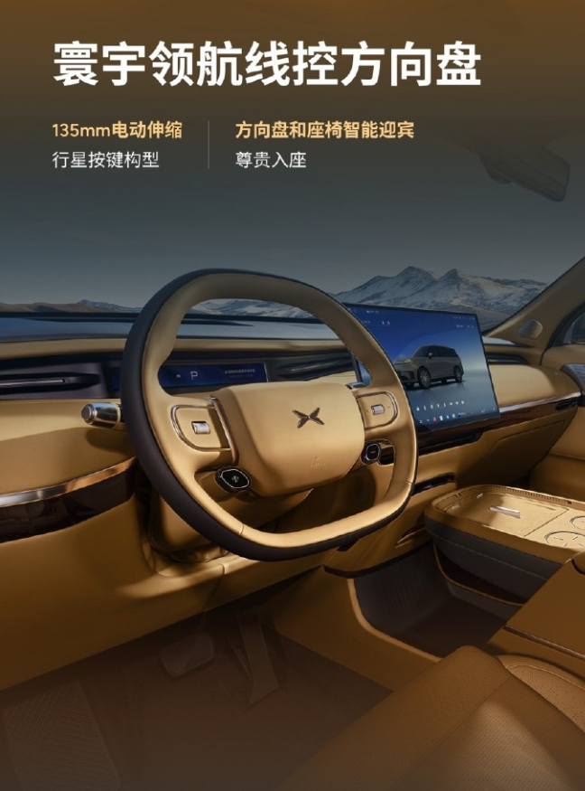 -寰宇线控方向盘:支持 135mm 电动伸缩,搭配智能迎宾仪式感