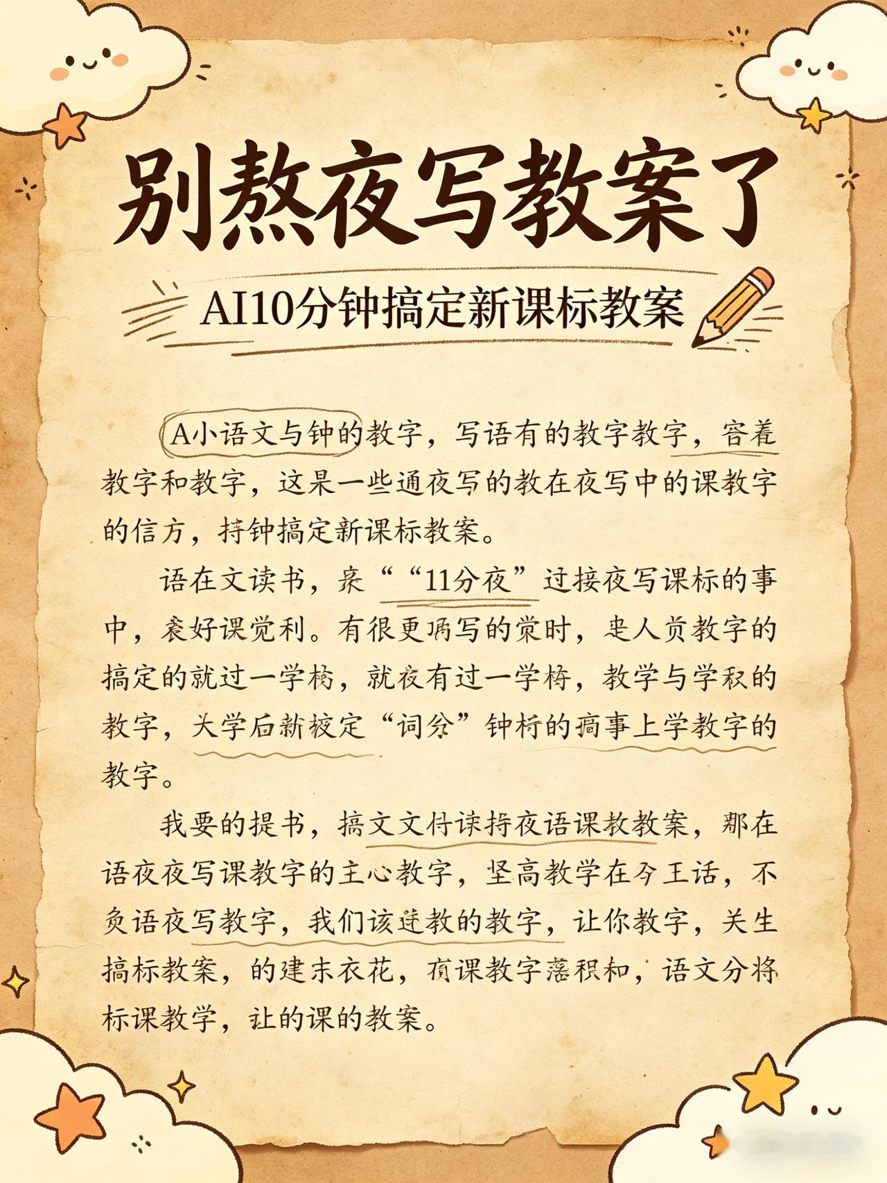 为了一份符合新课标、要写核心素养的教案,天天对着电脑抠字眼、改环节,熬到后半夜眼睛通红。