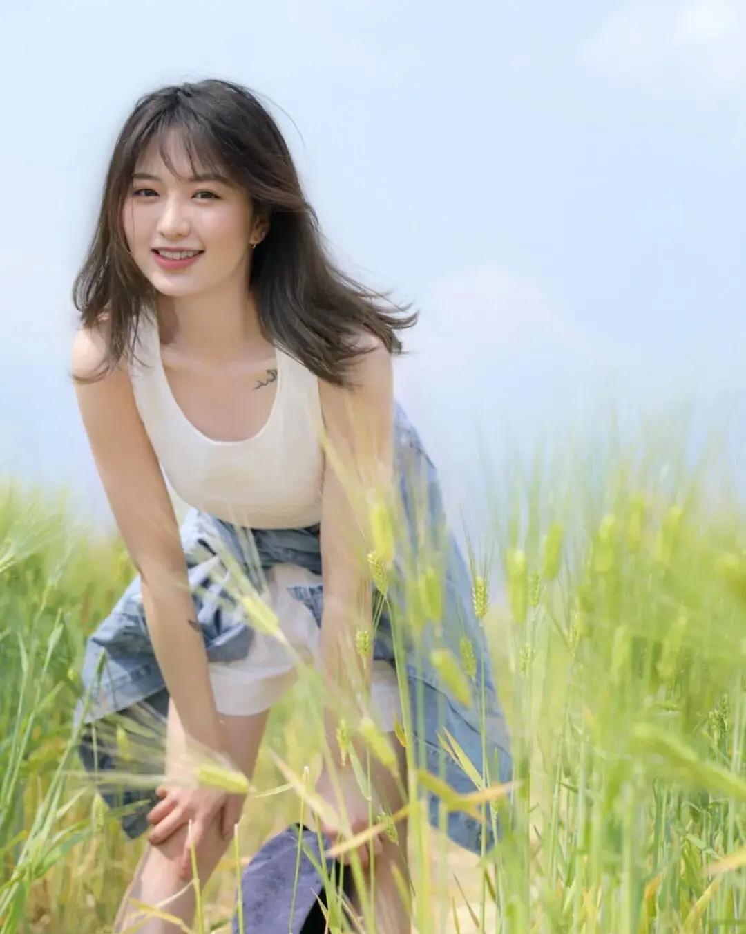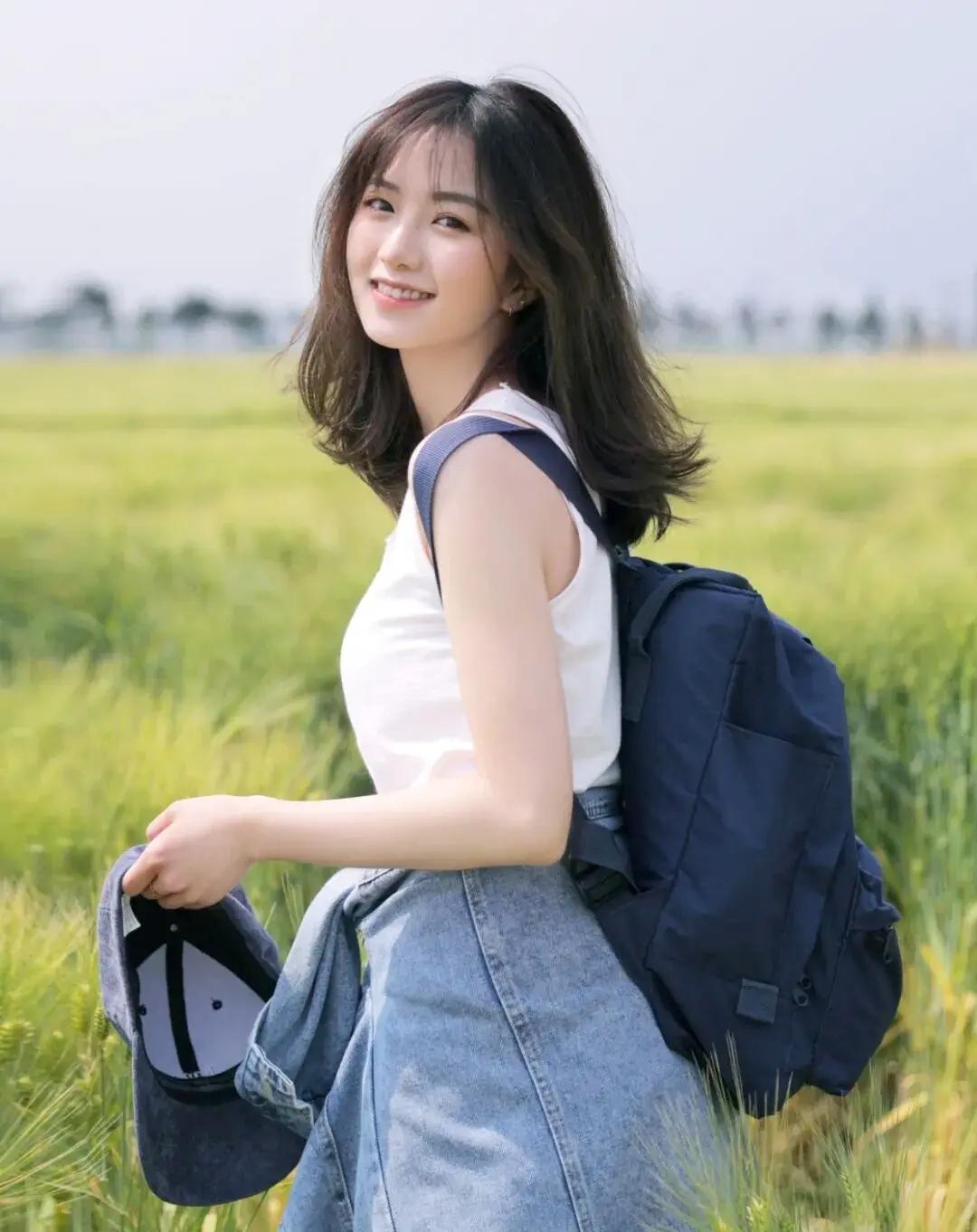 绿意盎然中,一位温婉的姑娘,宛如春日里的阳光。