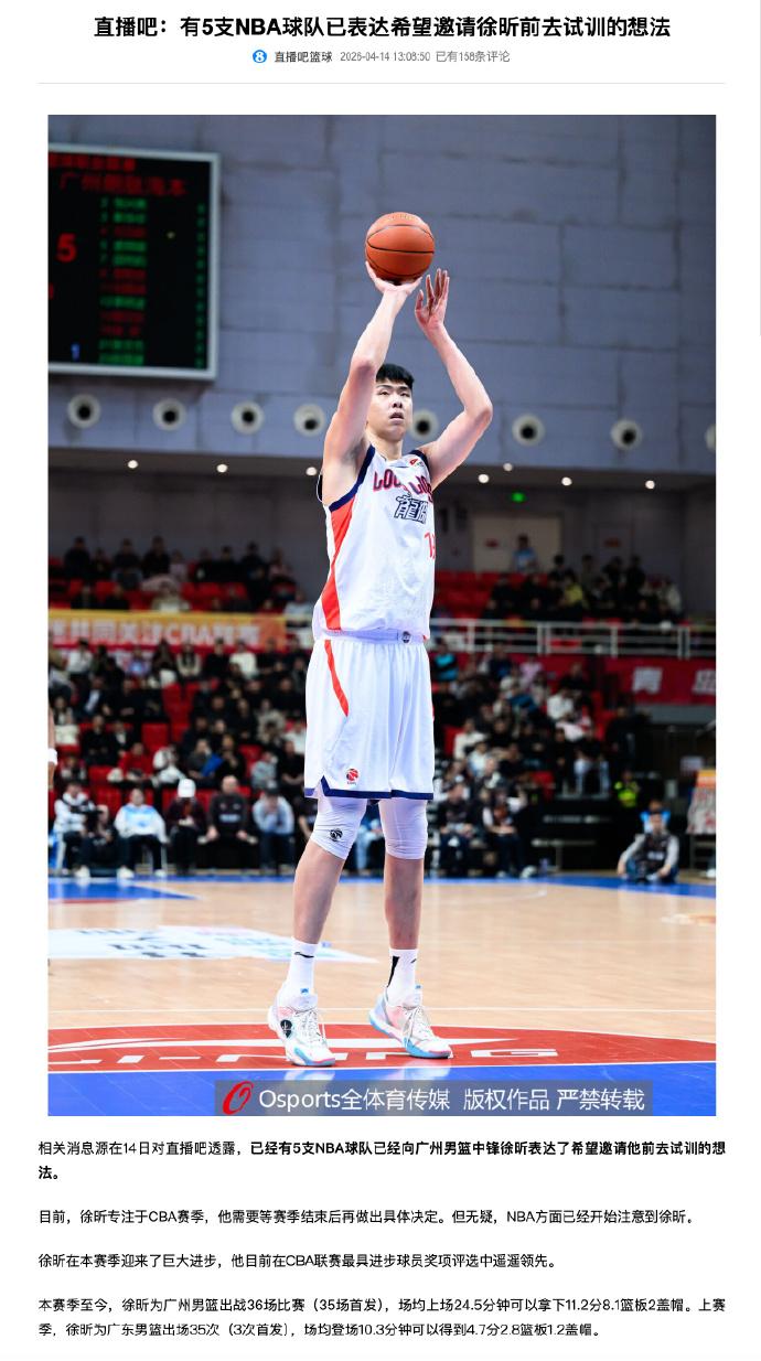 这个夏天,如果广州队经过一番运作,徐昕很有可能会前往NBA进行试训,如果试训结果令NBA管理层满意,那么徐昕的舞台将会更为宽广。