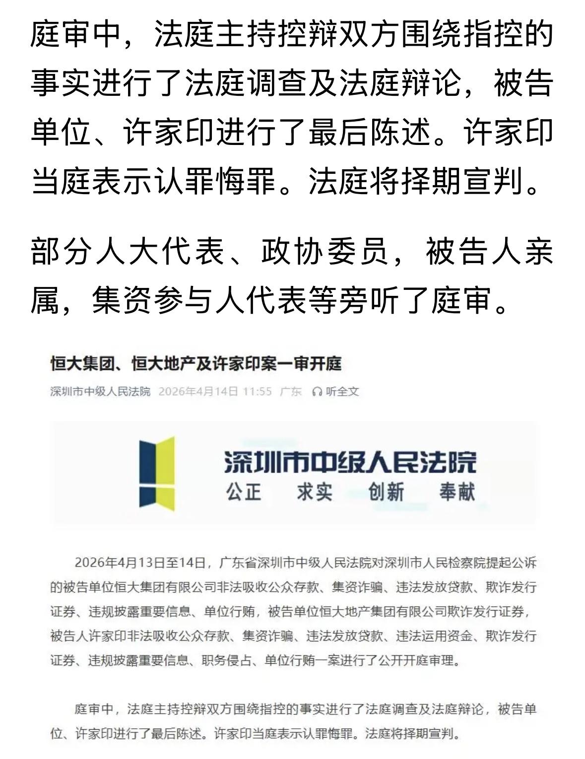 许家印一审当庭认罪悔罪我用豆包结合报道描述,“许家印穿深灰色西装、未打领带,头发