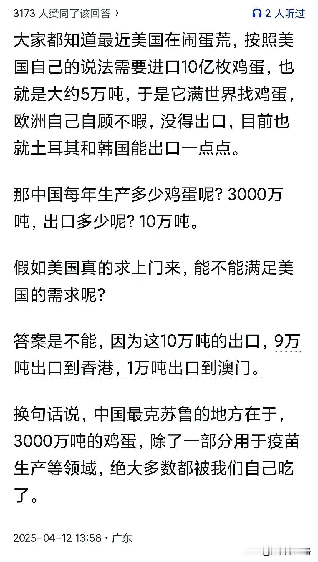 有网友就说,自己吃了一年的鸡蛋。除了饭店什么的带的。其它的鸡蛋都是老家老母亲给我的,这不会计入3000万吨规模。