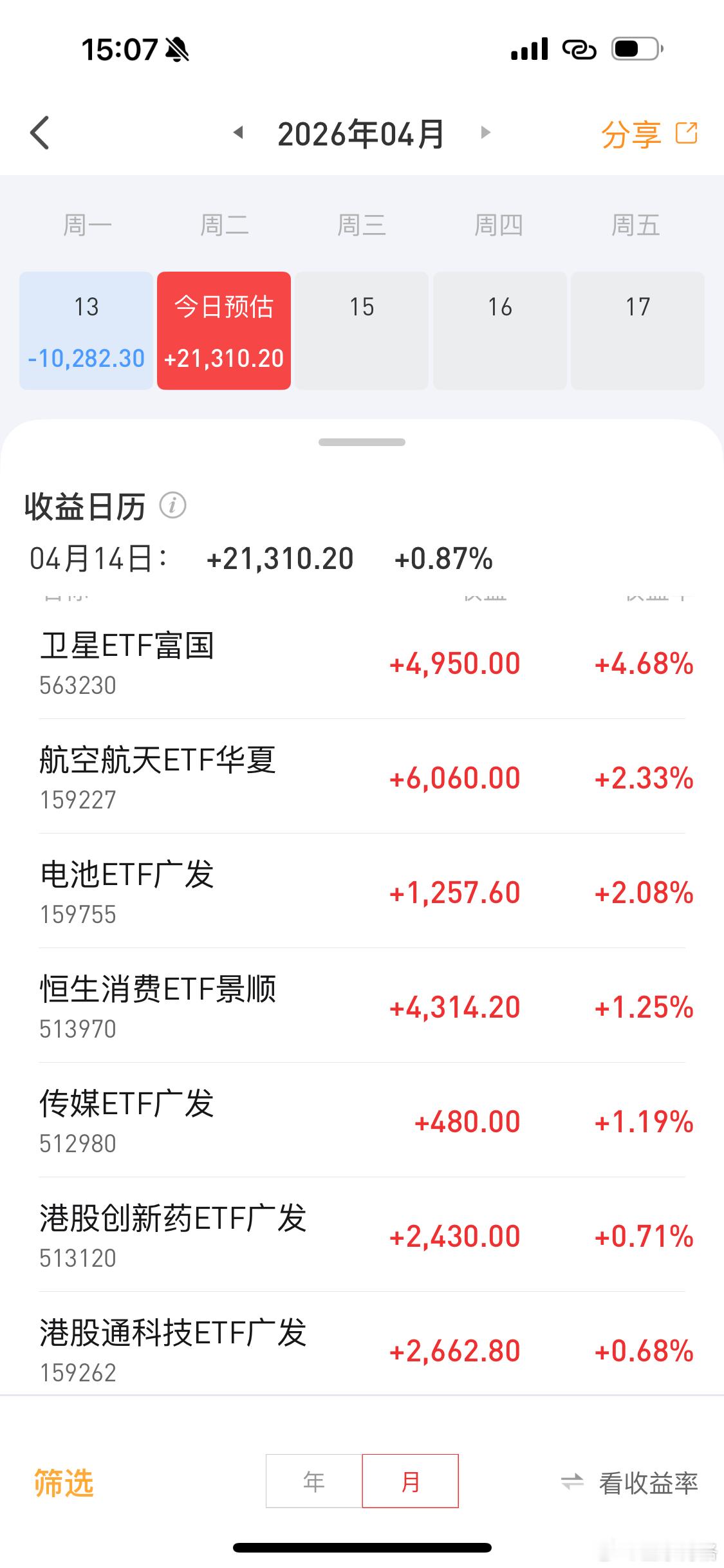ETF帐户今天盈利2.1万主要靠航空航天与卫星了大家多点赞,博格持续晒实盘基金恒生科技