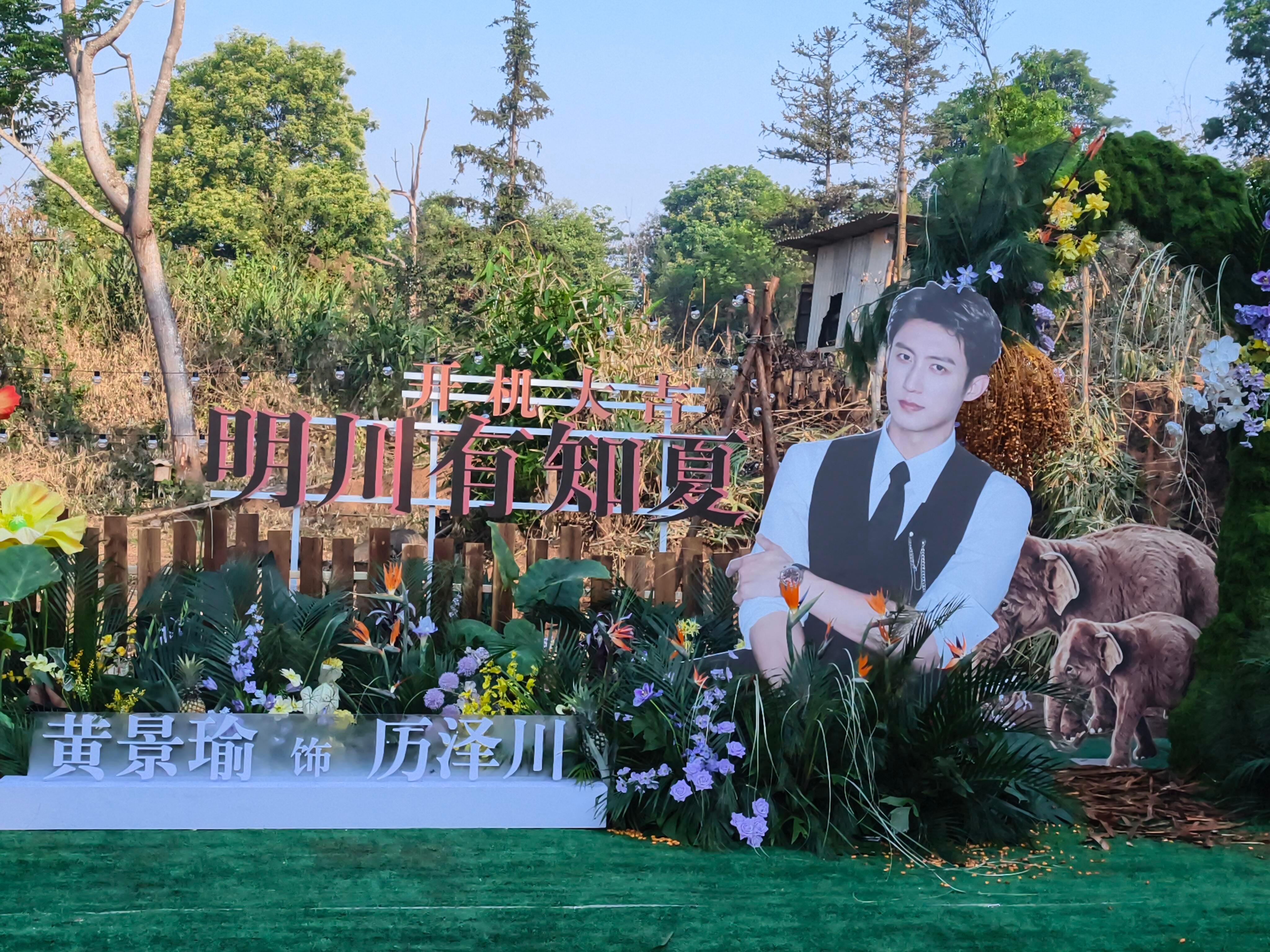 黄景瑜︱《明川有知夏》︱官宣开机花墙20260414充满雨林野趣的花墙留个纪念真的很好玩的名副其实的【花】墙