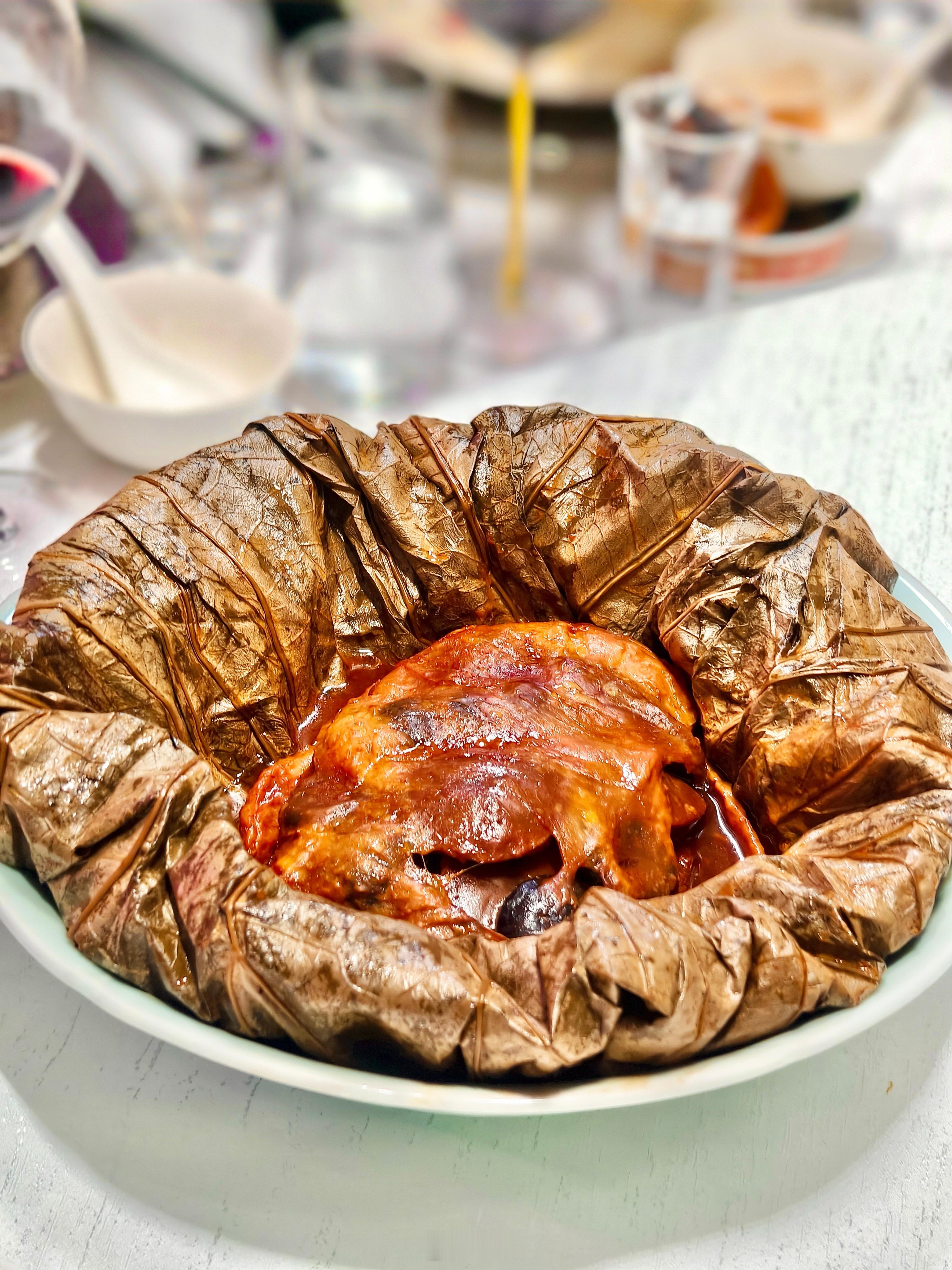 🌟解香楼的帮主叫花鸡,泥壳敲开,荷叶清香裹着鸡油涌出,吸满鲍鱼的馥郁鸡肉,酥烂脱骨。遇外滩的红鲟蒸米糕,红鲟膏满,糯米饭吸足了蟹汁之鲜,忍不住要多食几筷。新荣记的黄焖甲鱼鮰鱼肚配明太籽,汤色金亮,胶质浓稠,明太籽的咸鲜在热汤中化开,微微辣口欲罢不能。