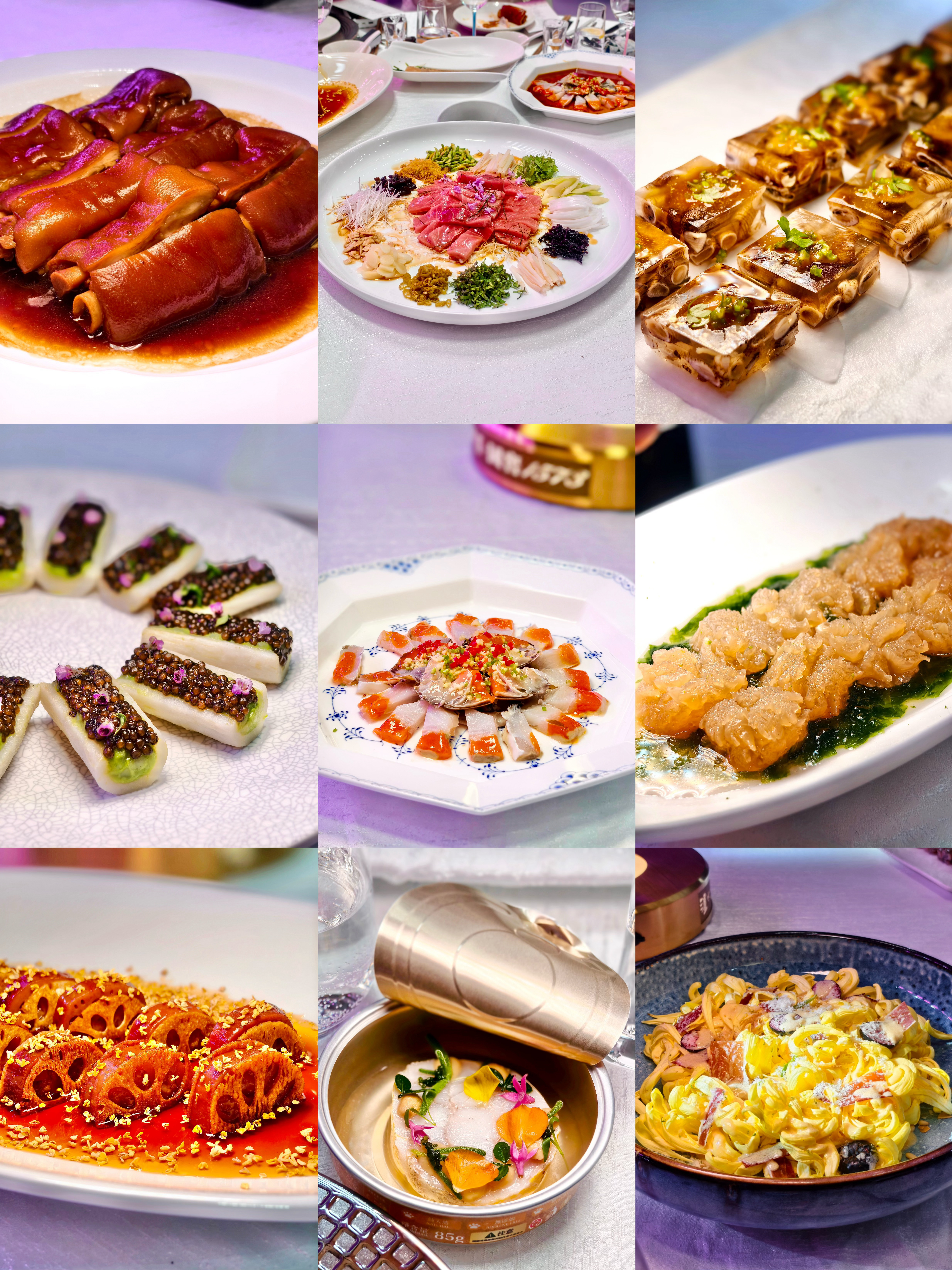 🌟菁禧荟的卤水四点金,卤香沉郁,糯弹有味。如院的西湖藕韵,藕的双重口感,淋桂花糖,清甜婉转。遇外滩的厦门土笋冻,晶莹似海,咬开是潮汐的记忆。新荣记的辣卤海味,微辣激出贝类的鲜甜。泓-0871的火腿太阳菊,薄切火腿如花瓣,入口即化。蟹王府的和风海蛰花,海蜇雕作花形,脆嫩间透着醋香。