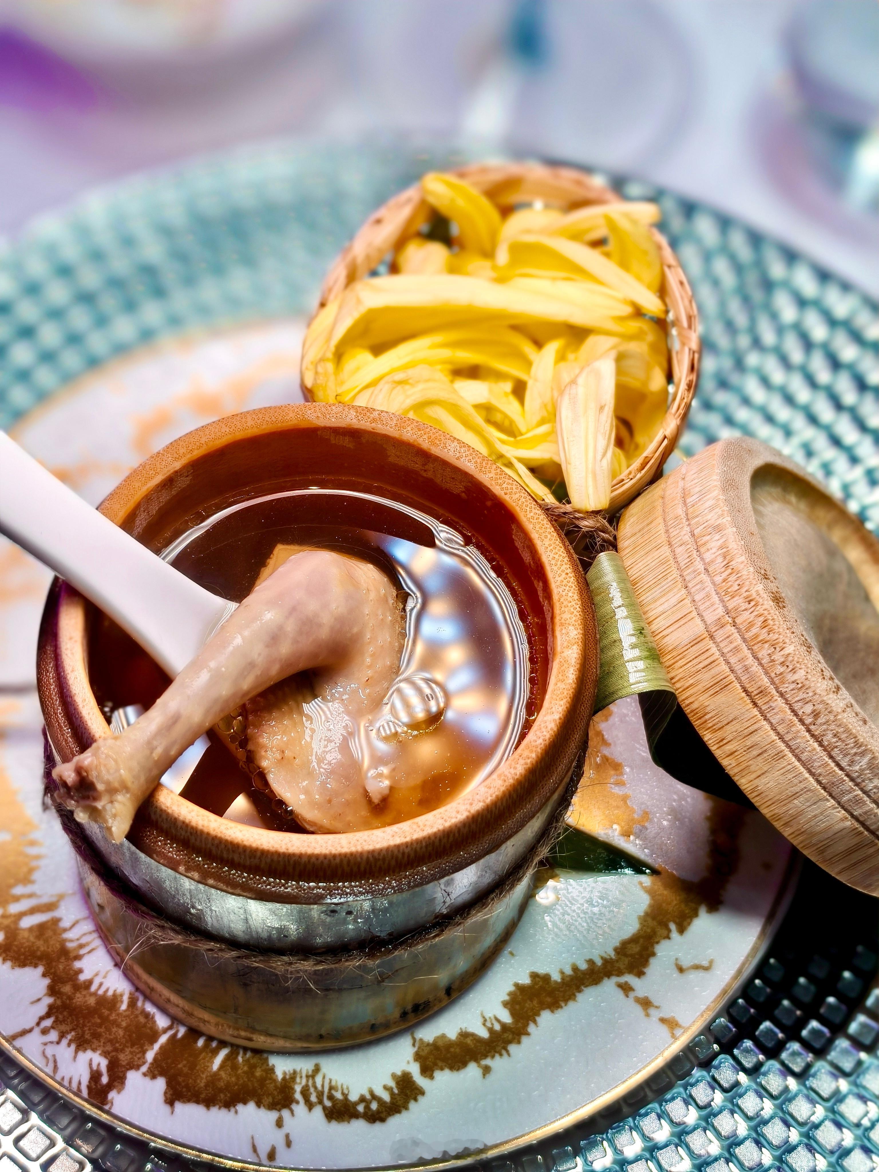 🔥跃·Yue端来一盅竹米炖老鸽。竹米罕用,与老鸽同煲,汤色清浅,透着淡淡的糯米甜香,滋味却醇厚如山间晨雾。