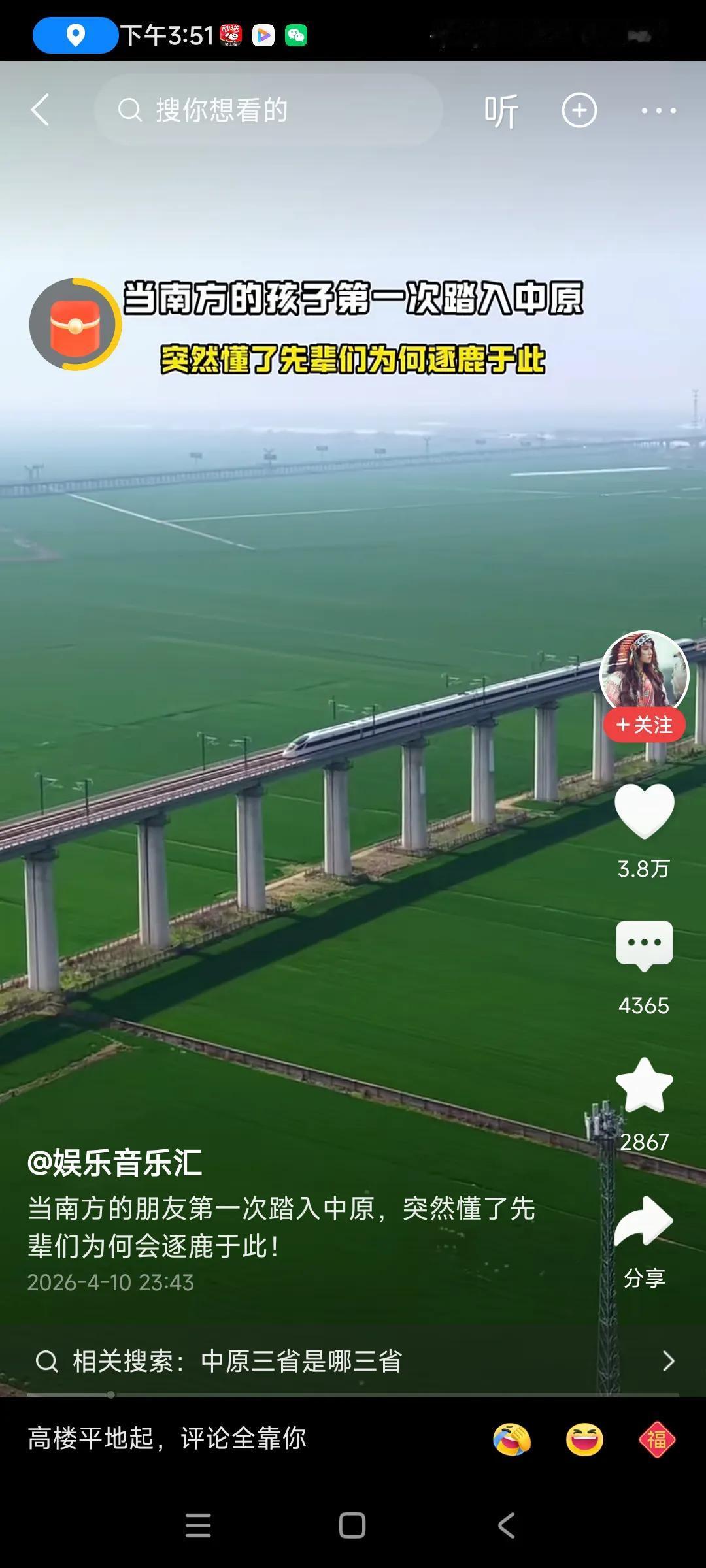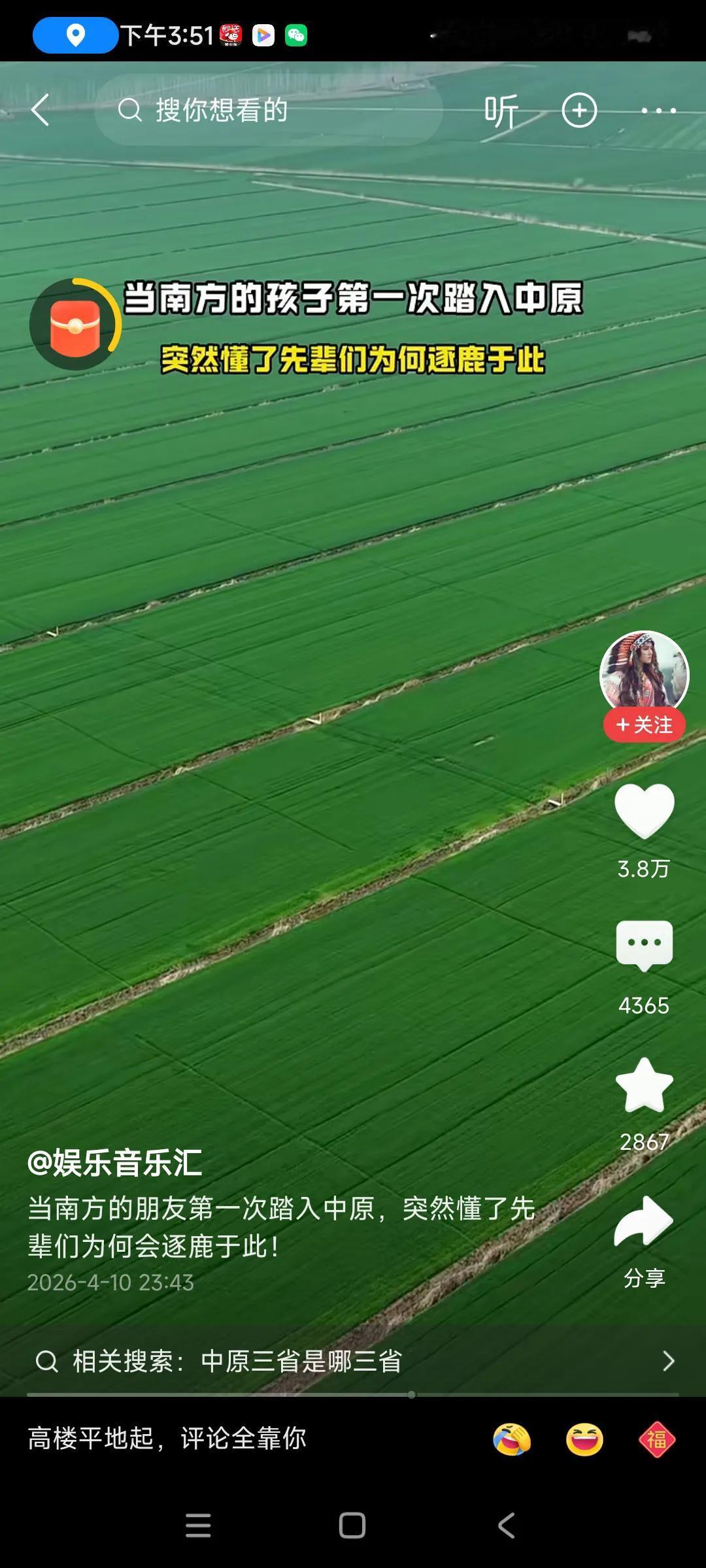 河南是中国的粮仓,小麦产量全国第一,几乎没有什么山区,全是平原,是个好地方!!
