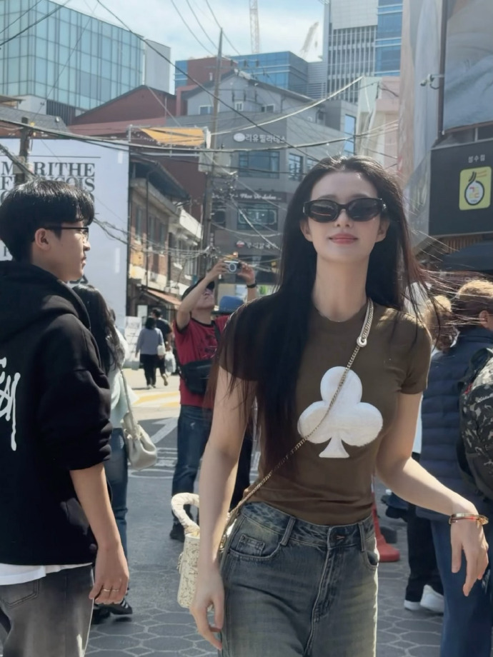 王楚然晒韩国旅行照晒和的韩国旅行照~颜值也太绝了!中式浓颜在街头格外亮眼,状