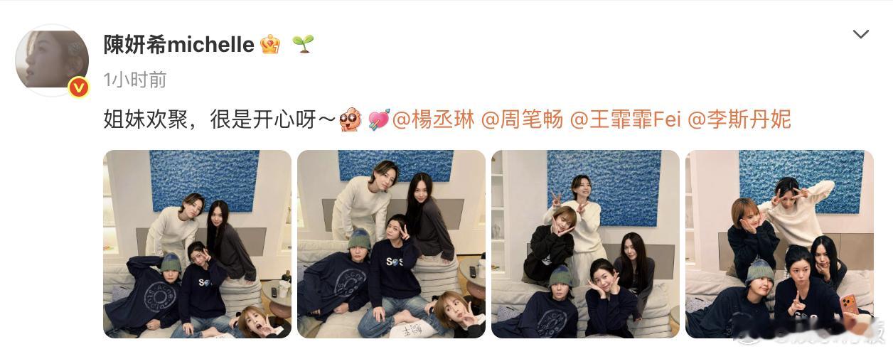 浪姐团看望受伤的陈妍希陈妍希的石膏上写了躺平 这是什么浪姐 1+2 的神仙团建!陈妍希跟腱受伤后,杨丞琳、周笔畅、王霏霏、李斯丹上门探望,姐妹局太温暖了 大家围在陈妍希身边,妍希腿上的石膏上还写了“躺平”,这就是幸福的具象化吧