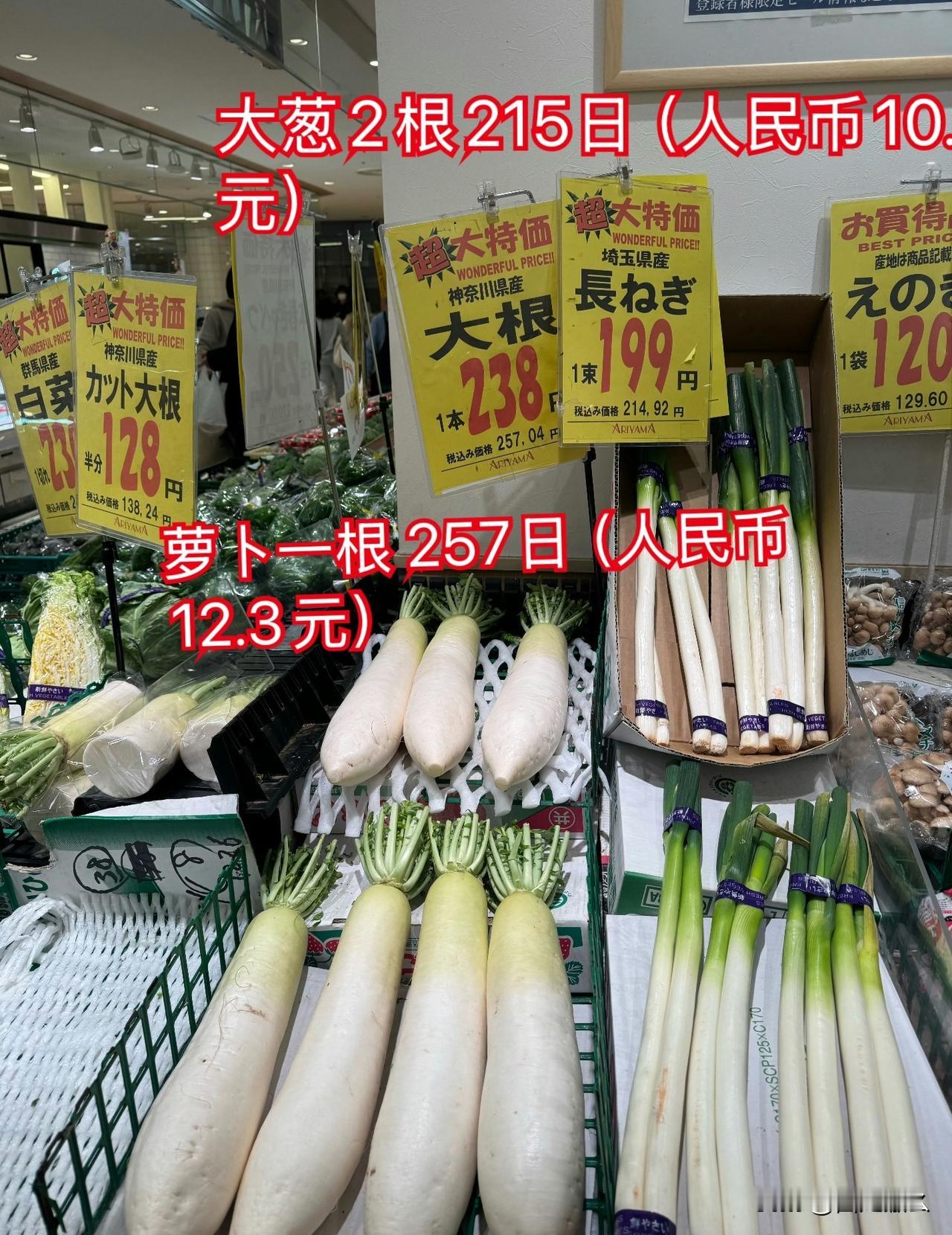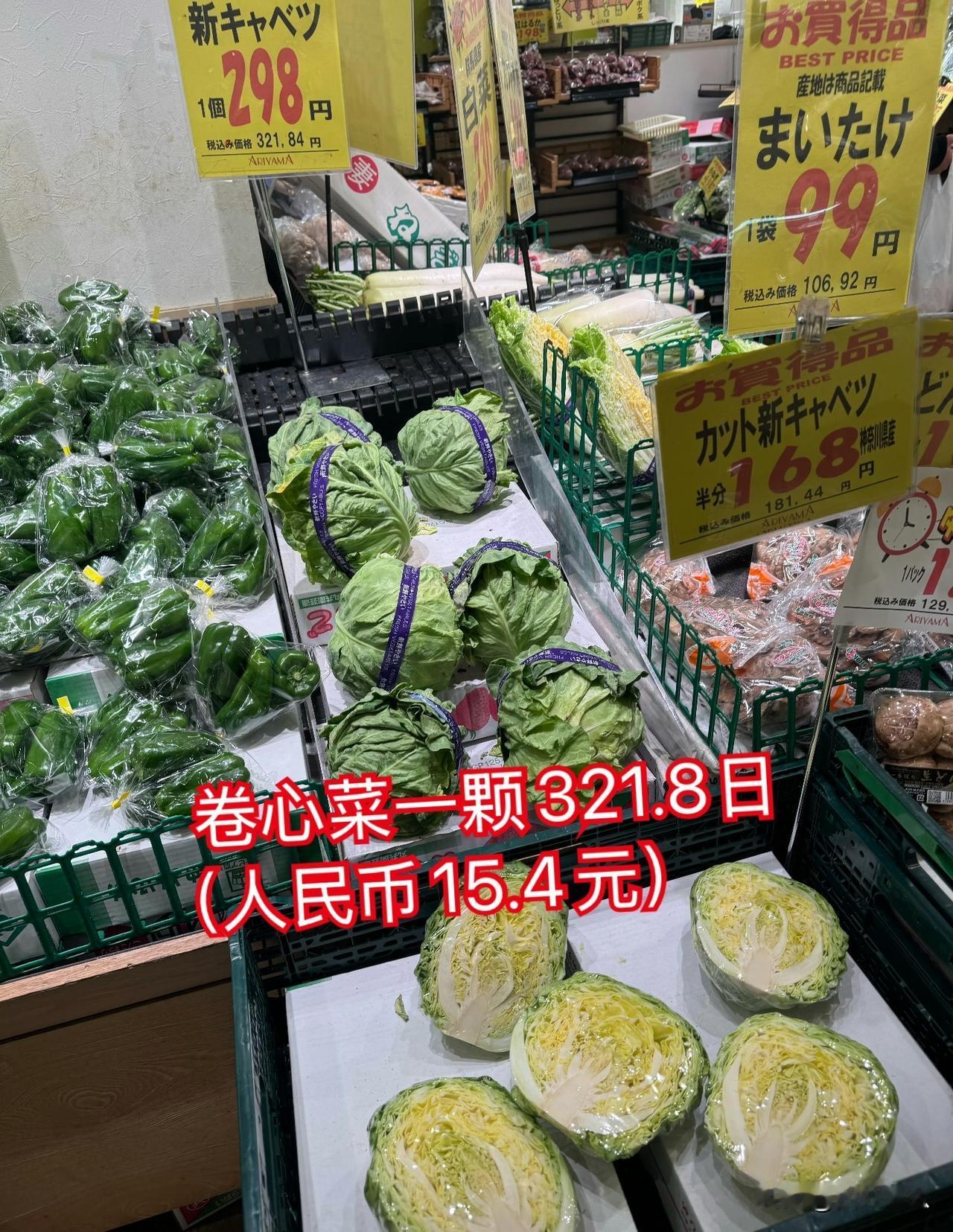 下图的日本超市白菜,真的是精致可爱,相当于人民币12元,最关键的,白菜品种,水分也不行,口感还极差。大葱5元一根。差不多和上海一个水平。