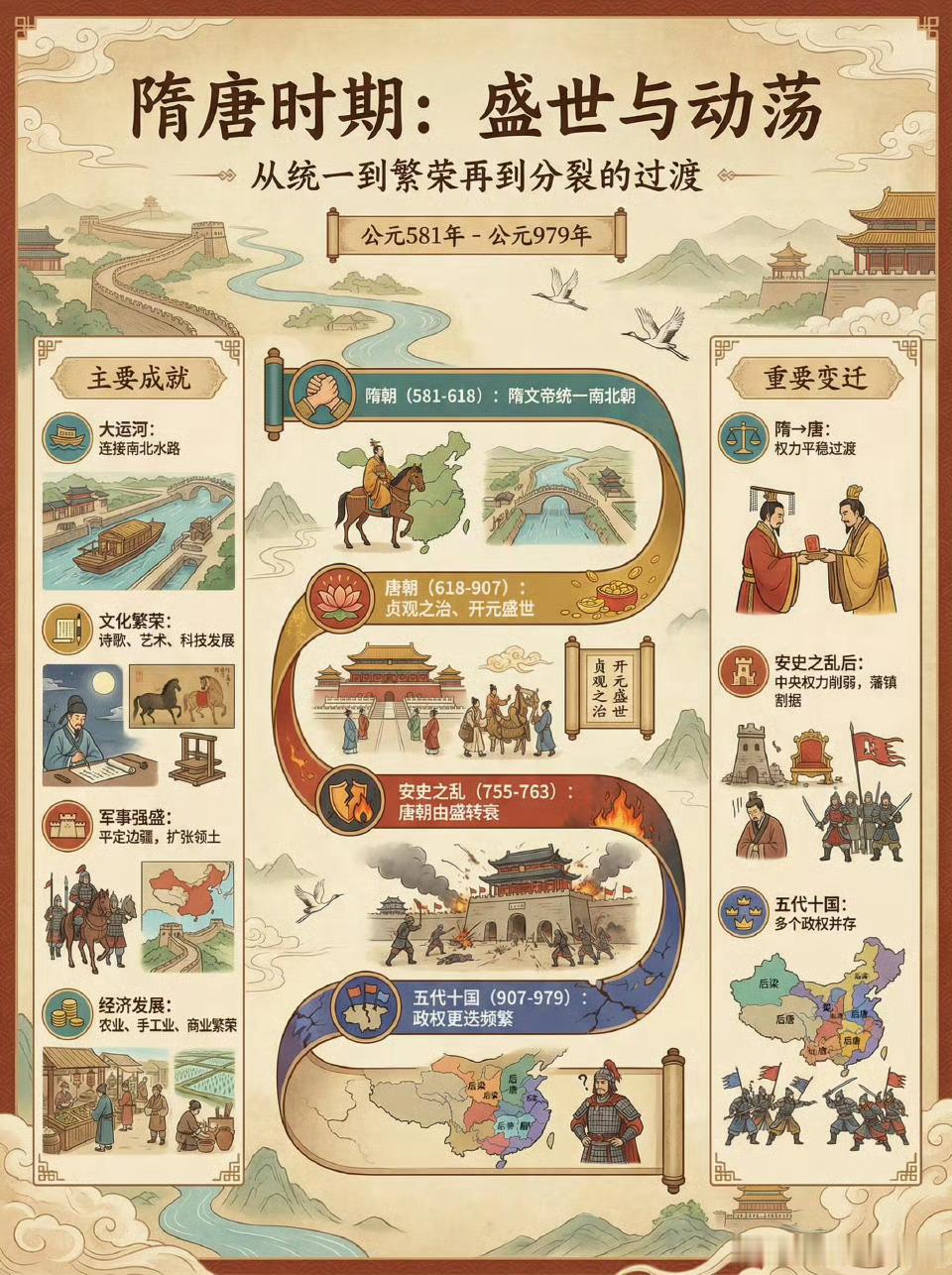 隋唐时期到五代十国的动荡。