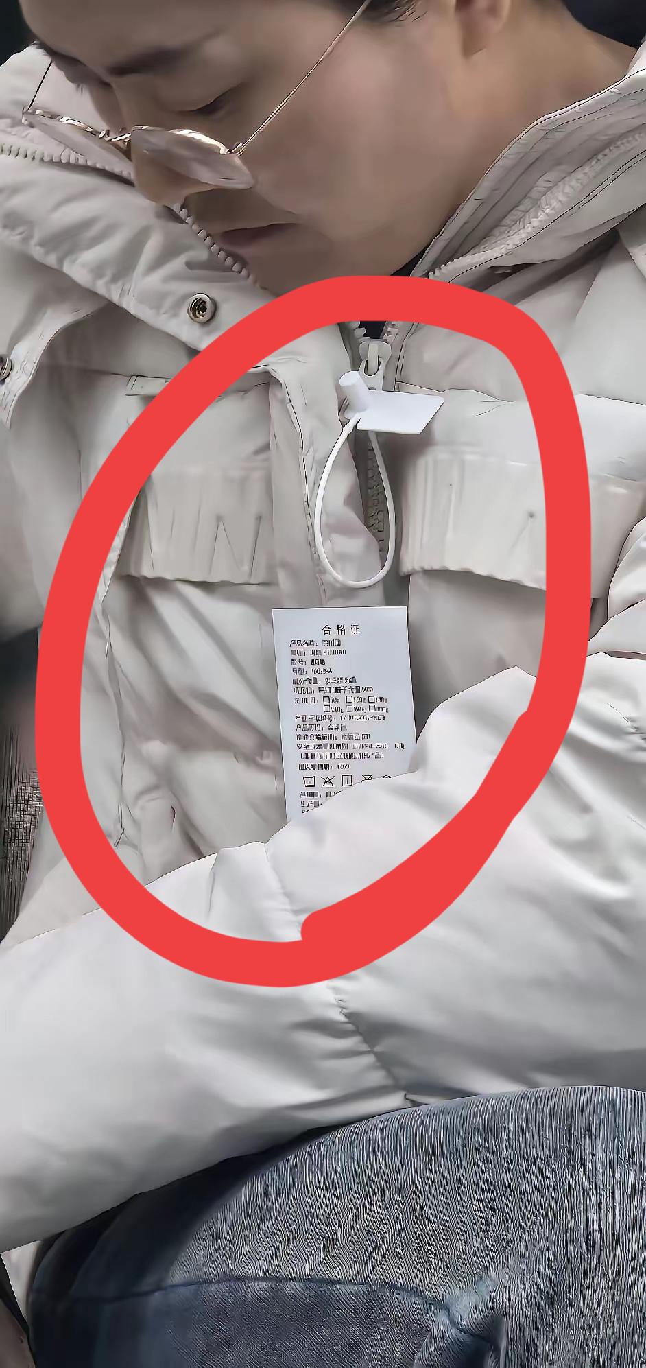 不料,仔细看她的衣服上,竟然还挂着一个白色的吊牌!这一幕,令人十分惊讶!