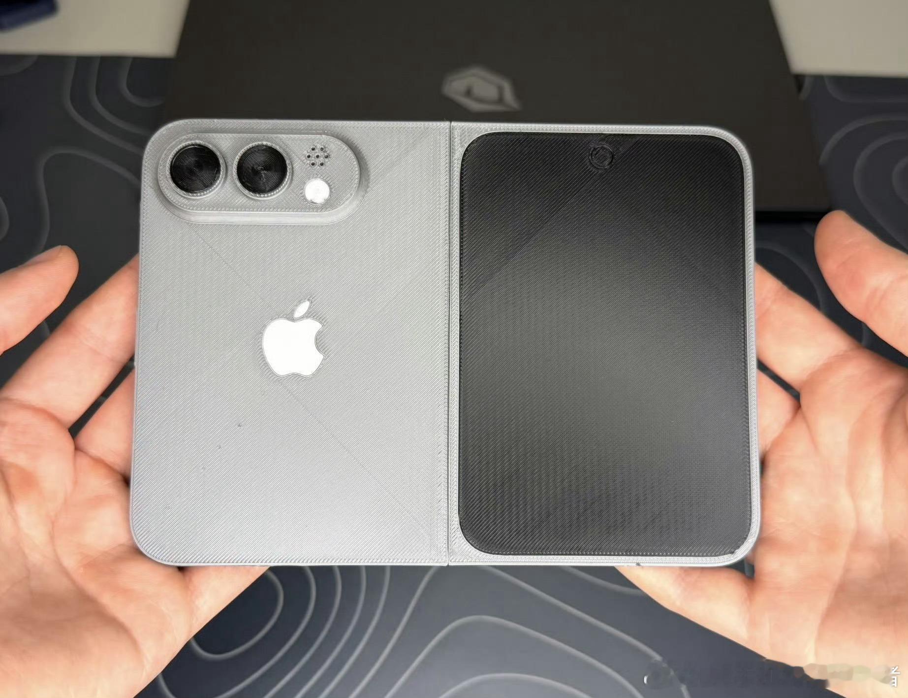 折叠屏iPhone外观实锤折叠屏iPhone的模型曝光了,基本和之前网传的渲染图差不太多,最终就是这种方案。和华为Pura X Max差不多的形态,设计上也还行,大家觉得这个设计好看吗?
