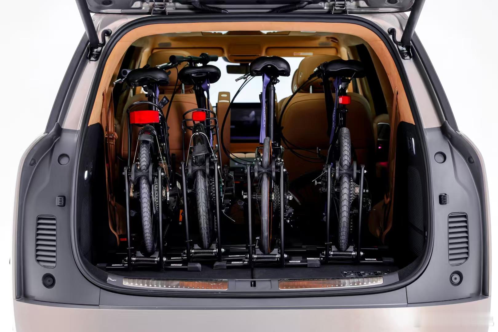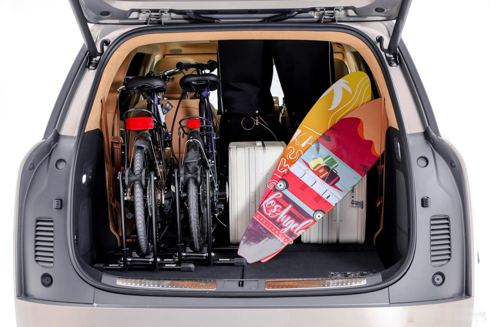 小鹏GX把家用SUV后备箱空间玩得格外通透。满座6人出行,依旧能从容放下6只24寸行李箱,日常全家出游完全不用纠结收纳。第三排座椅支持50:50电动独立放倒,整体拓展容积直达1748L,轻轻松松塞进四台自行车,周末近郊骑行随心出发。说起来它的开口足足1.24米,地台高度仅724mm,搬放大件行李毫不费力。灵活多变的空间布局,覆盖全家各类出行场景,实打实重新定义了大六座SUV实用标杆。小鹏GX首发同级唯一三排电动三折叠小鹏GX坐满4人还能装4台自行车
