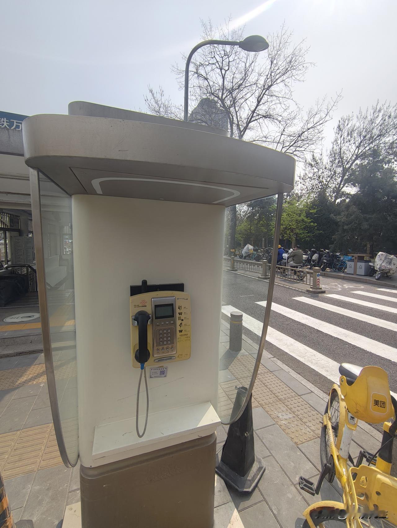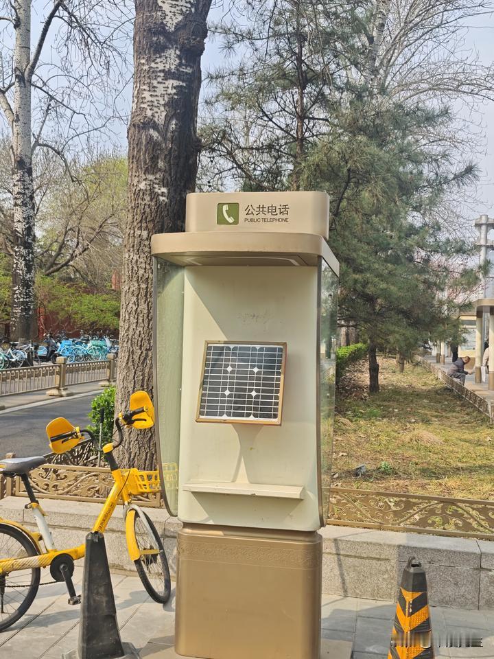 地铁口有一个老式拨号电话亭。这物件在北京也不多见了,基本上是历史淘汰物了。差不多20年前,手机还不普及,大家都用电话卡插入各个电话亭,拨号打电话。这个电话亭拆了一侧是电话机装上太阳能板。不知道是不是给另一侧的电话机供电使用。
