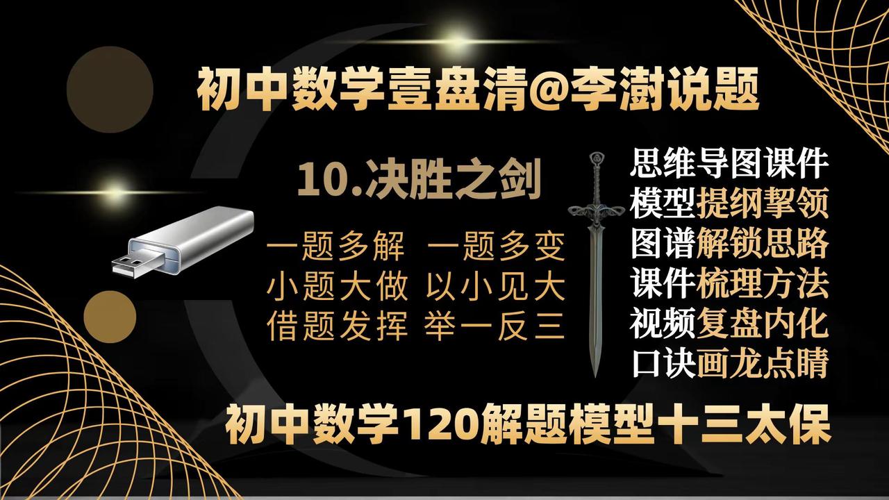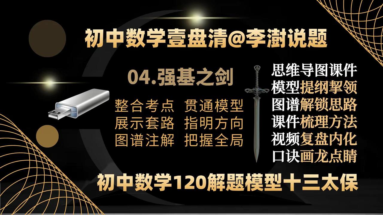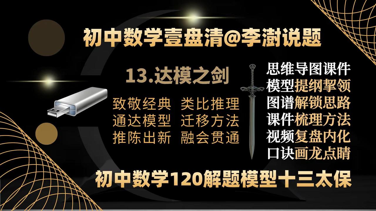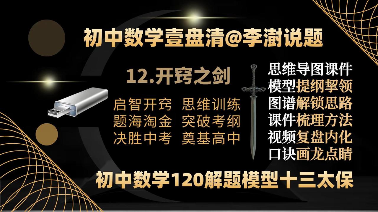 初中数学壹盘清:13部作品封面&创作主旨。如何让你家里的电视机变成孩子的大屏学习机——让你的孩子在家也能享受名师的辅导——你绝对想不到,一个小小的优盘帮你做到了—— 如何让你家里的电视机变成孩子的大屏学习机——让你的孩子在家也能享受名师的辅导——你绝对想不到,一个小小的优盘帮你做到了——把脉新中考,迎接新挑战,与中考改革无缝衔接的《初中数学壹盘清》5.0版全新上线,专注于通过全面、系统、科学、专业的训练,提高孩子的思维能力。——初中数学 中考数学初中数学解题技巧 中考数学压轴题 如何让你家里的电视机变成孩子的大屏学习机。让你的孩子在家也能享受名师的辅导?你绝对想不到,一个小小的优盘帮你做到了—— 把脉新中考,迎接新挑战,与中考改革无缝衔接的《初中数学壹盘清》5.0版全新上线,专注于通过全面、系统、科学、专业的思维训练,激发孩子的内驱力,培养孩子的自学能力。作品精选初中数学各年级、各学段、各个层次的母题、典题、易错题和压轴题1236道。用12部图谱化、具象化的思维导图解题课件与视频课程深度融合,按照由浅入深、循序渐进的原则,划分为同步跟进的基础篇;模型导学的方法篇;沙场练兵的提高篇和巅峰对决的拓展篇四大模块,从是什么?为什么?怎么做?如何想?四个维度抽丝剥茧、举一反三,将解题的思路、方法、规律和技巧整合为397种题型方法和120个解题模型。初中数学解题技能全覆盖。 全部作品存储在一个优盘中,在电脑、电视、投影仪上即插即用。无需上网、随心所学、大屏护眼、家长可控。为学生备考复习、家长陪辅助学、教师备课增效,提供了一套全媒体、个性化;一站式、保姆级的学习教程。 把脉新中考,迎接新挑战:《初中数学壹盘清》5.0版全新上线。作品又名《初中数学120解题模型十三太保》,13部作品,120个解题模型,397个题型方法,1236道变式训练助力中考金榜题名!初中数学 中考数学 初中数学解题技巧 中考数学压轴题