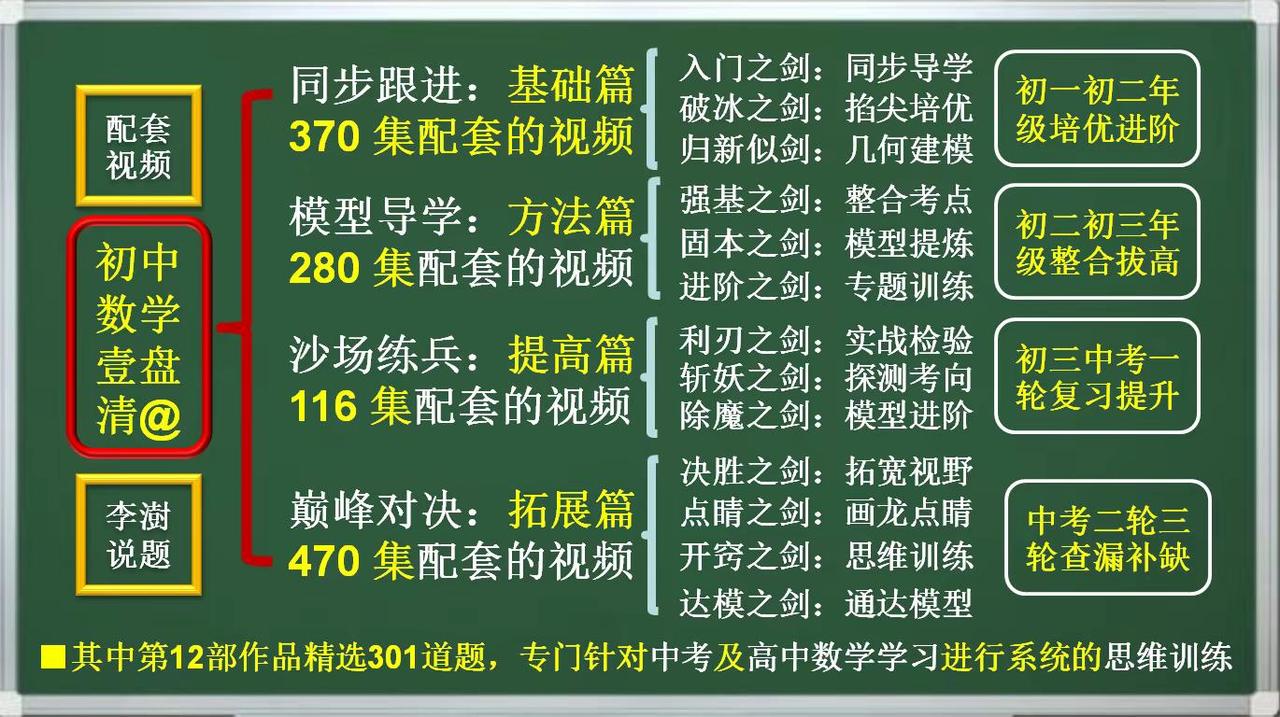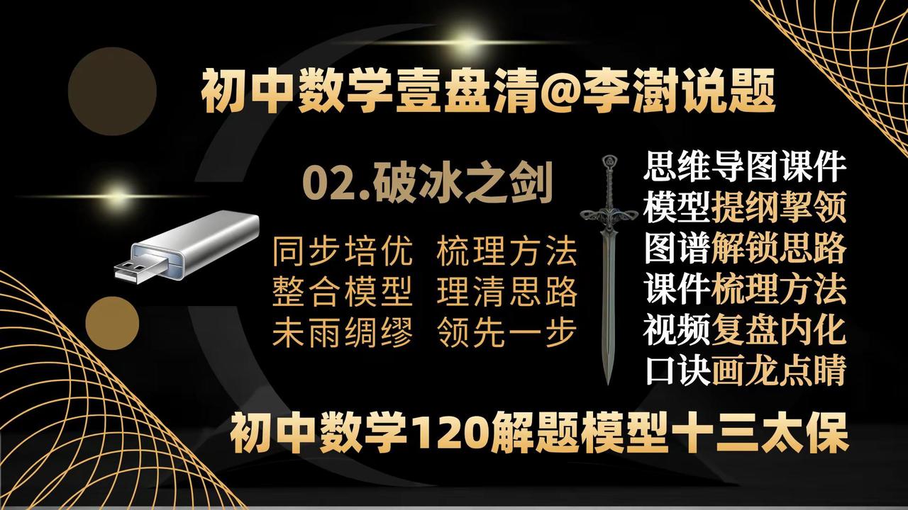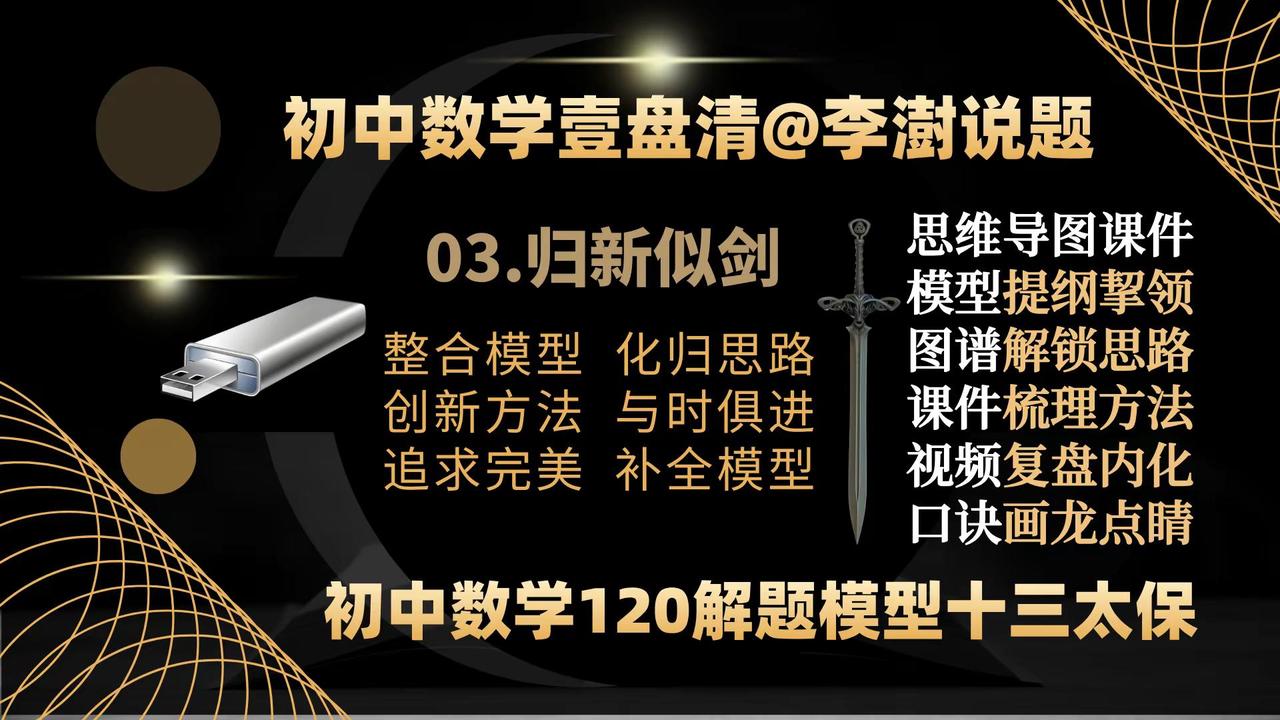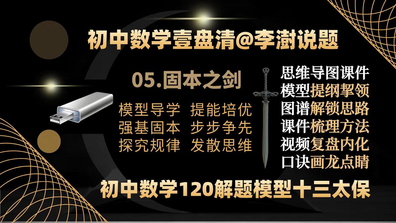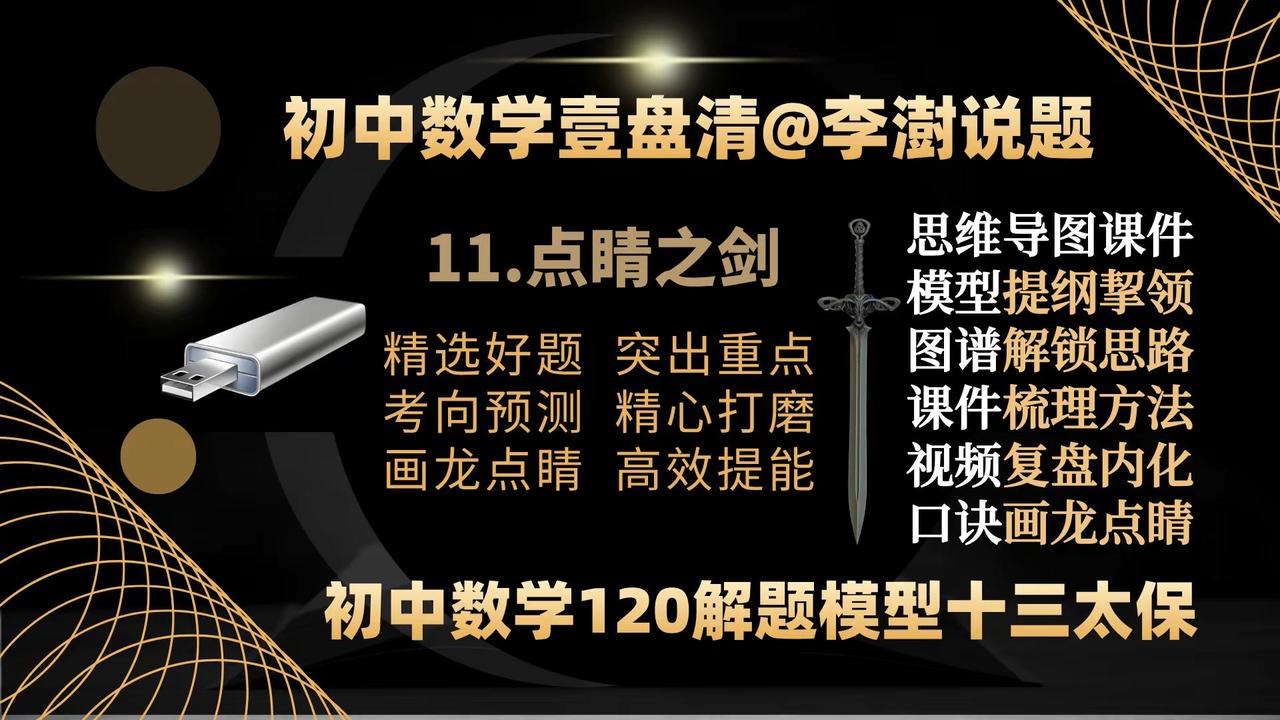 初中数学壹盘清:13部作品封面&创作主旨。如何让你家里的电视机变成孩子的大屏学习机——让你的孩子在家也能享受名师的辅导——你绝对想不到,一个小小的优盘帮你做到了—— 如何让你家里的电视机变成孩子的大屏学习机——让你的孩子在家也能享受名师的辅导——你绝对想不到,一个小小的优盘帮你做到了——把脉新中考,迎接新挑战,与中考改革无缝衔接的《初中数学壹盘清》5.0版全新上线,专注于通过全面、系统、科学、专业的训练,提高孩子的思维能力。——初中数学 中考数学初中数学解题技巧 中考数学压轴题 如何让你家里的电视机变成孩子的大屏学习机。让你的孩子在家也能享受名师的辅导?你绝对想不到,一个小小的优盘帮你做到了—— 把脉新中考,迎接新挑战,与中考改革无缝衔接的《初中数学壹盘清》5.0版全新上线,专注于通过全面、系统、科学、专业的思维训练,激发孩子的内驱力,培养孩子的自学能力。作品精选初中数学各年级、各学段、各个层次的母题、典题、易错题和压轴题1236道。用12部图谱化、具象化的思维导图解题课件与视频课程深度融合,按照由浅入深、循序渐进的原则,划分为同步跟进的基础篇;模型导学的方法篇;沙场练兵的提高篇和巅峰对决的拓展篇四大模块,从是什么?为什么?怎么做?如何想?四个维度抽丝剥茧、举一反三,将解题的思路、方法、规律和技巧整合为397种题型方法和120个解题模型。初中数学解题技能全覆盖。 全部作品存储在一个优盘中,在电脑、电视、投影仪上即插即用。无需上网、随心所学、大屏护眼、家长可控。为学生备考复习、家长陪辅助学、教师备课增效,提供了一套全媒体、个性化;一站式、保姆级的学习教程。 把脉新中考,迎接新挑战:《初中数学壹盘清》5.0版全新上线。作品又名《初中数学120解题模型十三太保》,13部作品,120个解题模型,397个题型方法,1236道变式训练助力中考金榜题名!初中数学 中考数学 初中数学解题技巧 中考数学压轴题