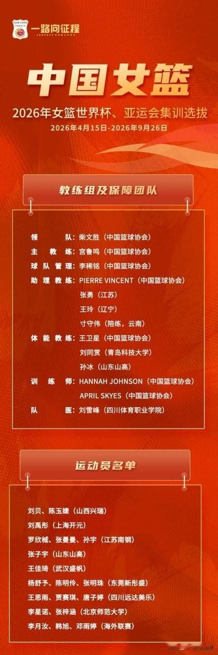 本次名单看点在于锋线更新换代。新星邓雨婷凭借在美国NCAA的出色表现(单场27分创中国球员纪录)入选,被视为“李梦接班人”,预计5月回国报到。而上期世预赛成员张茹、本赛季WCBA常规赛MVP武桐桐及内线球员许晨妍则遗憾落选。女篮亚洲赛