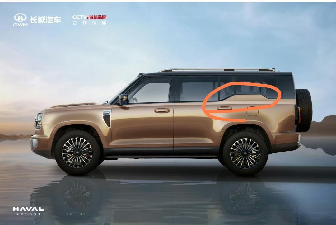 好好的一条平直腰线,可惜没有贯穿到底,这是哈弗最美旗舰suv了,c柱和d柱之间为