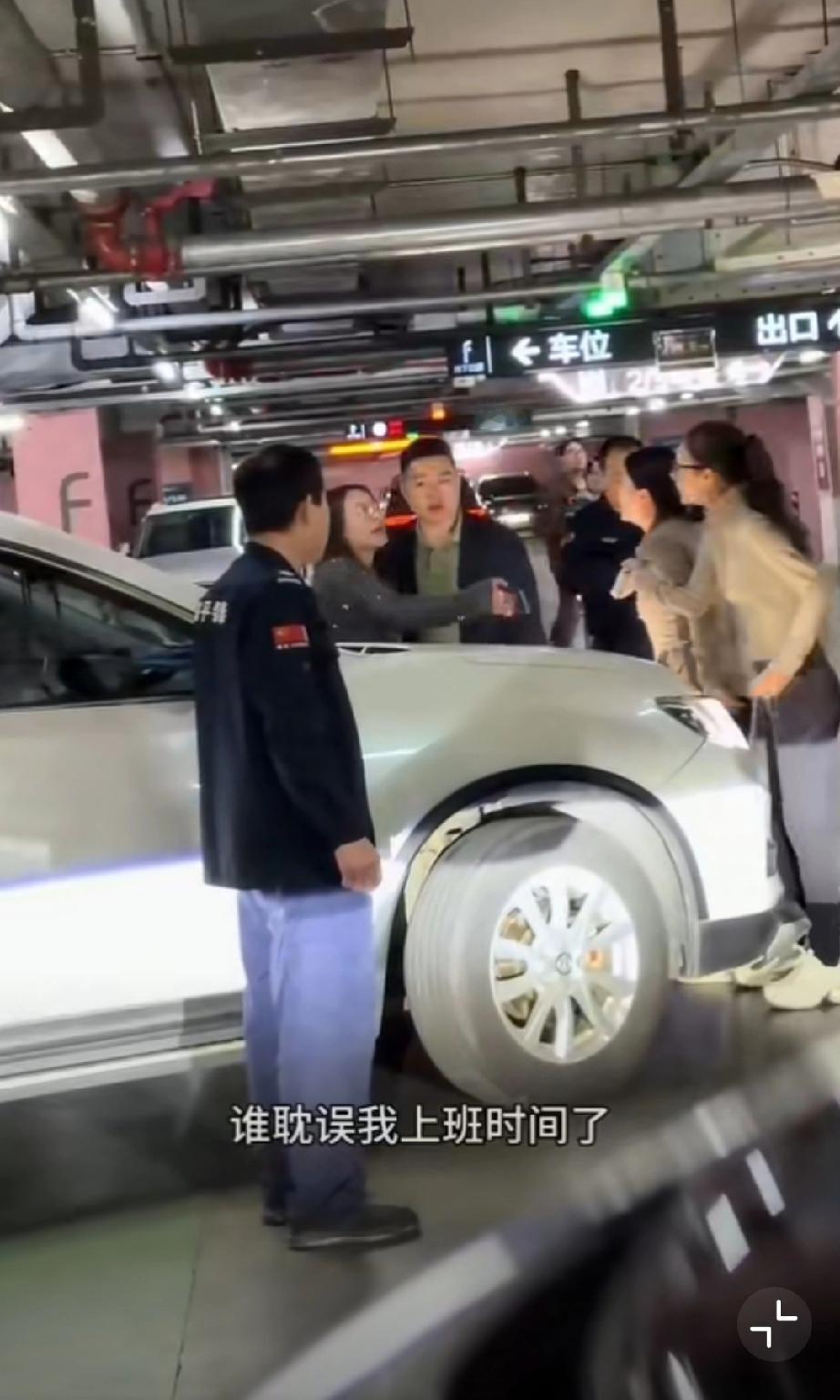 4月12日,杭州。 瑜伽裤女车主把车停过道,挡住别人车出来,等半小时才来,然后吵