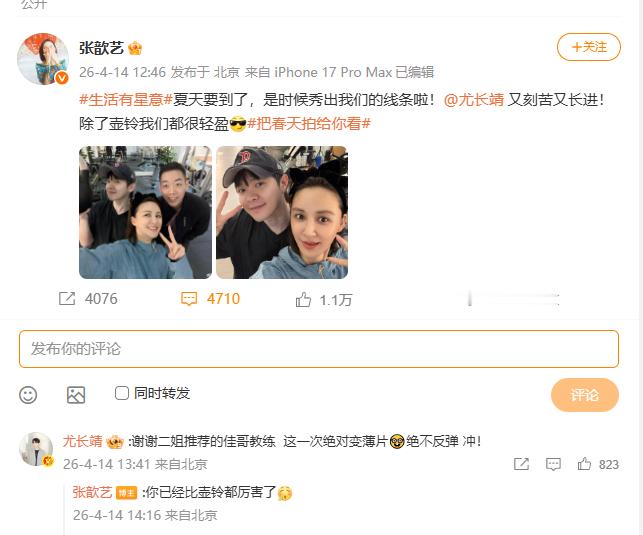 尤长靖张歆艺尤长靖健身照张歆艺和尤长靖一个教练 简直就是太自律了吧,咱就是说张歆