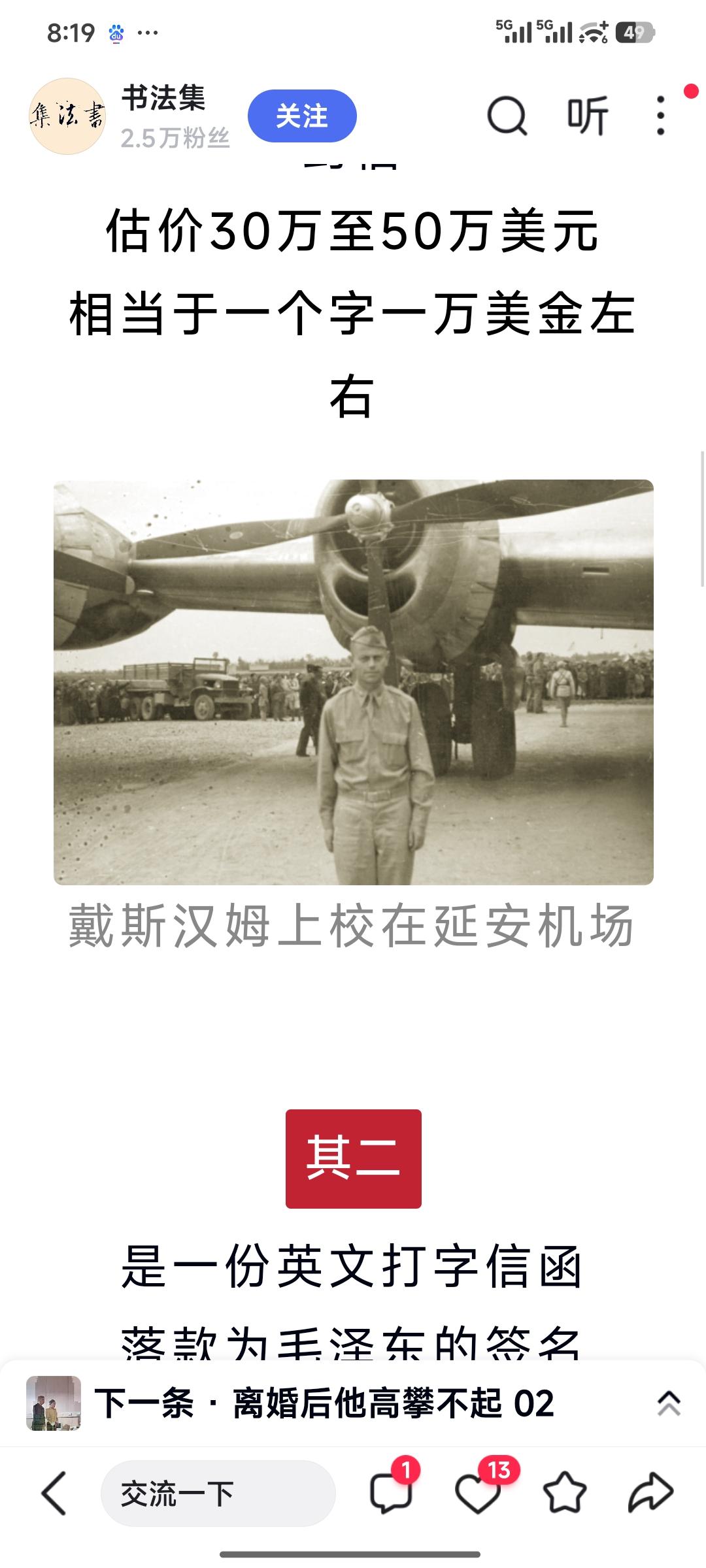 这封感谢信,在当时并未引起很多人的关注,但在戴斯汉姆去世后,这封短信10年前被苏富比拍卖行拍出50万美元天价,也就是说毛主席信中的每个字价值在1000美元左右,真可谓一字千金!10年后的今天,行情应该大大超过当初的数字了吧?